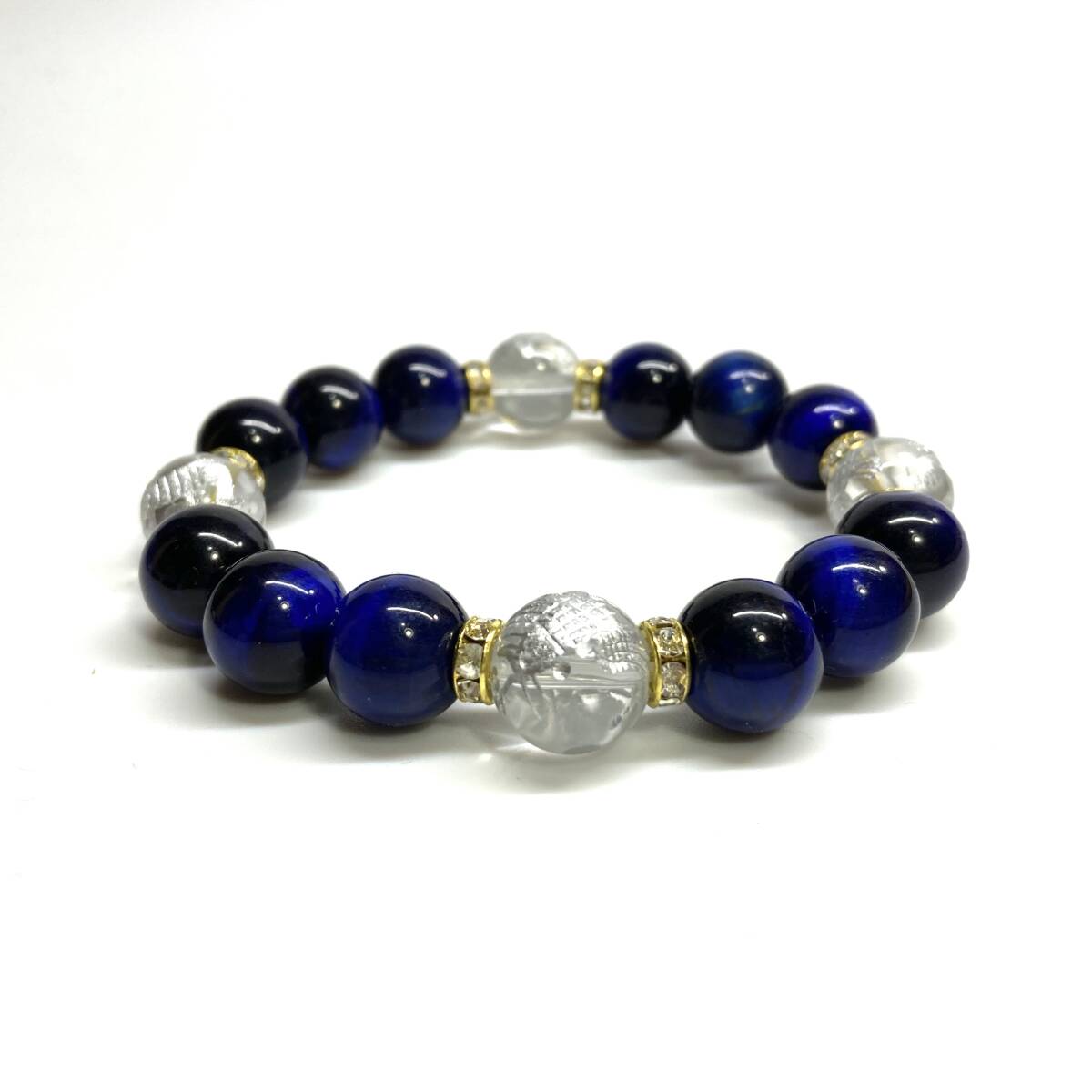 四神獣銀彫水晶×ブルータイガーアイ 12mm パワーストーン ブレスレット天然石 青龍 白虎 玄武 朱雀 運気上昇 お守り 四神獸 四神相応 G