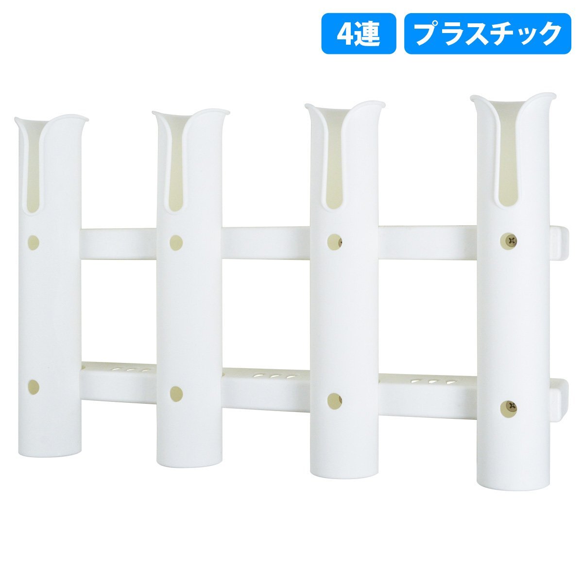 [4連] ロッド ホルダー 竿 立て 置き 入れ 釣り フィッシング スタンド ネジ付き 固定 船 漁船 ボート ヨット 白 ホワイト