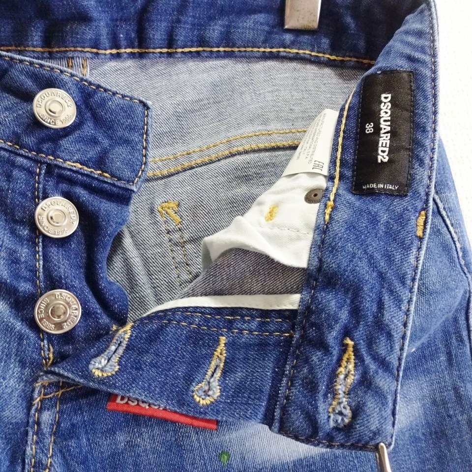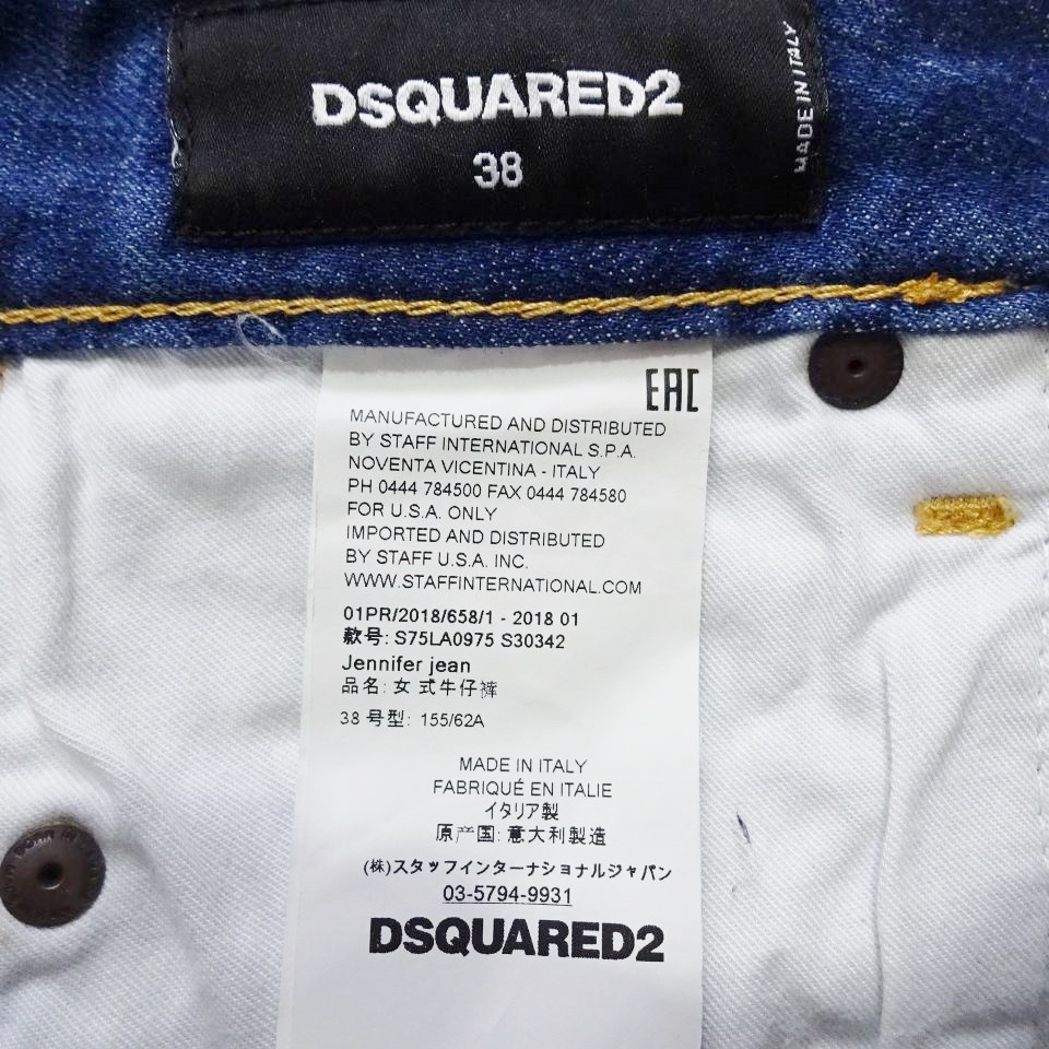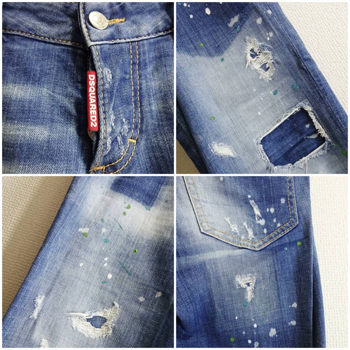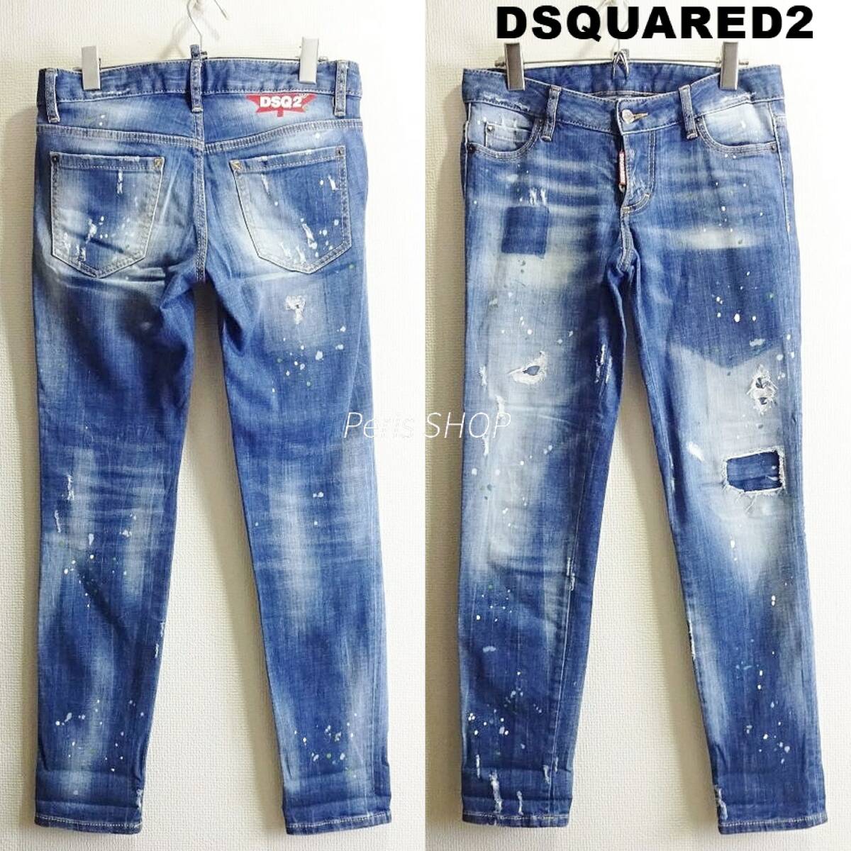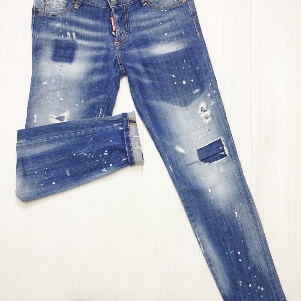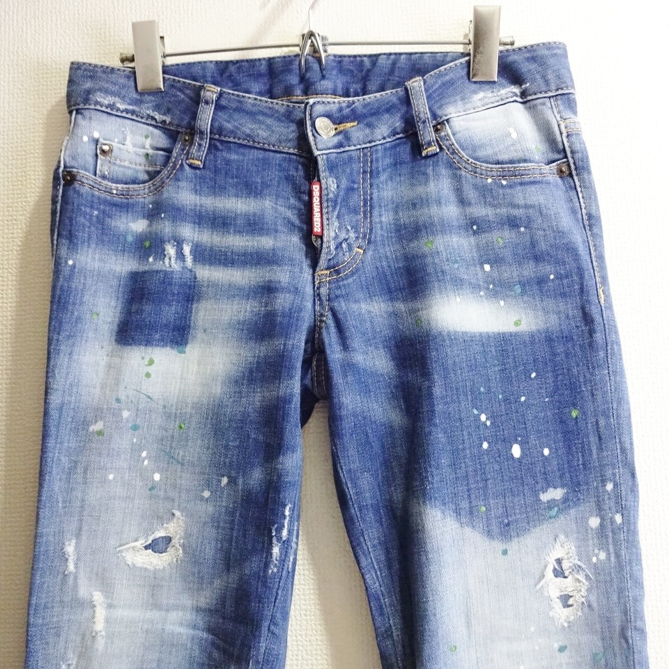 即決★ 送料無★ DSQUARED2 スプラッタースキニーデニム 【L】 ストレッチ 藍青 レディース イタリア製 ディースクエアード J376
