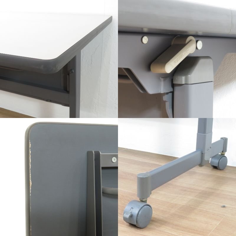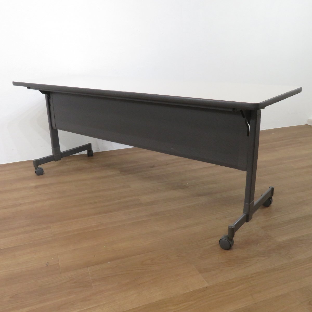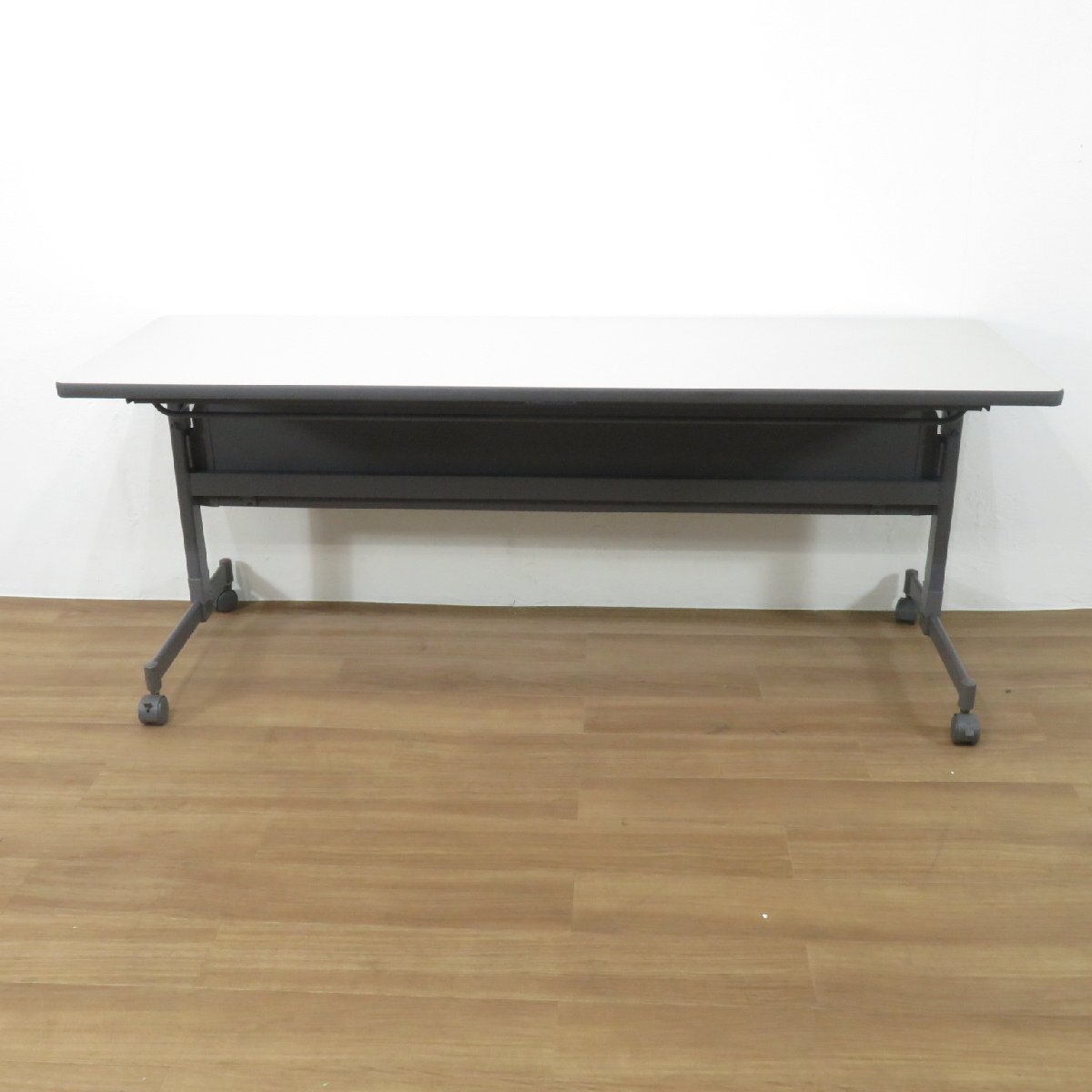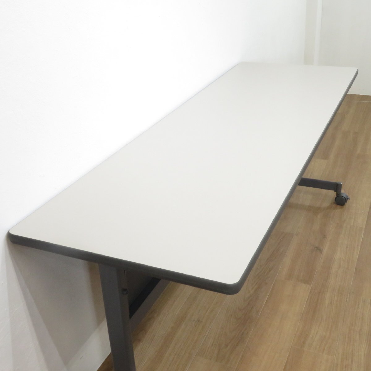会議室、ミーティングスペース、研修室、ワークスペース等で活躍する汎用性の高いスタックテーブルです。 天板を跳ね上げて重ねて収納できるネスティング方式のため、不使用時は省スペースに収納できます。 キャスター付きで移動も容易。会議室やレイアウト変更時にも対応しやすい設計です。 網棚付きで荷物や資料を天板下に収納でき、打ち合わせ中の散らかり防止に貢献します。 幅1,800 mmでゆとりがある設計です。 |