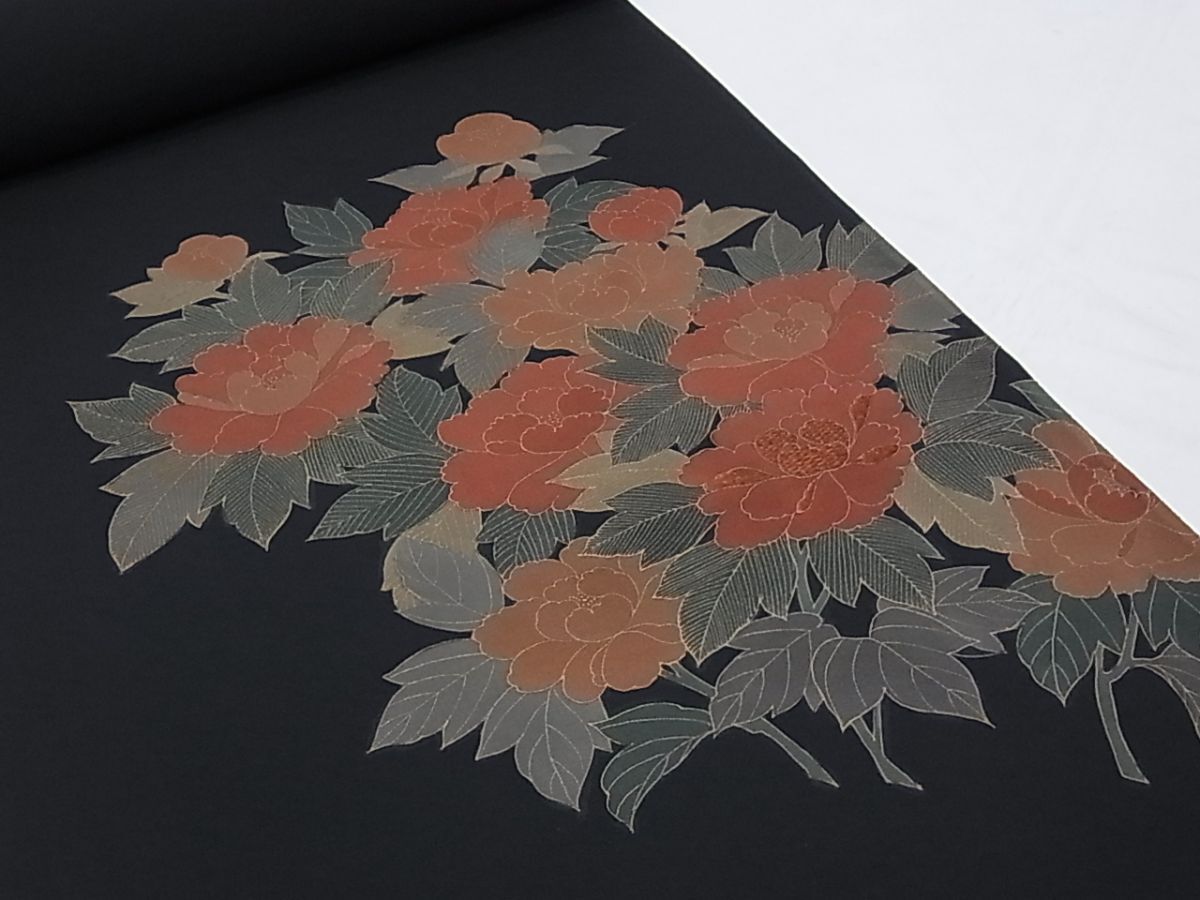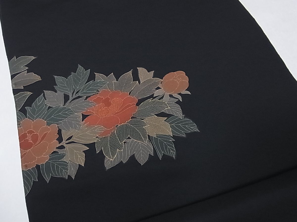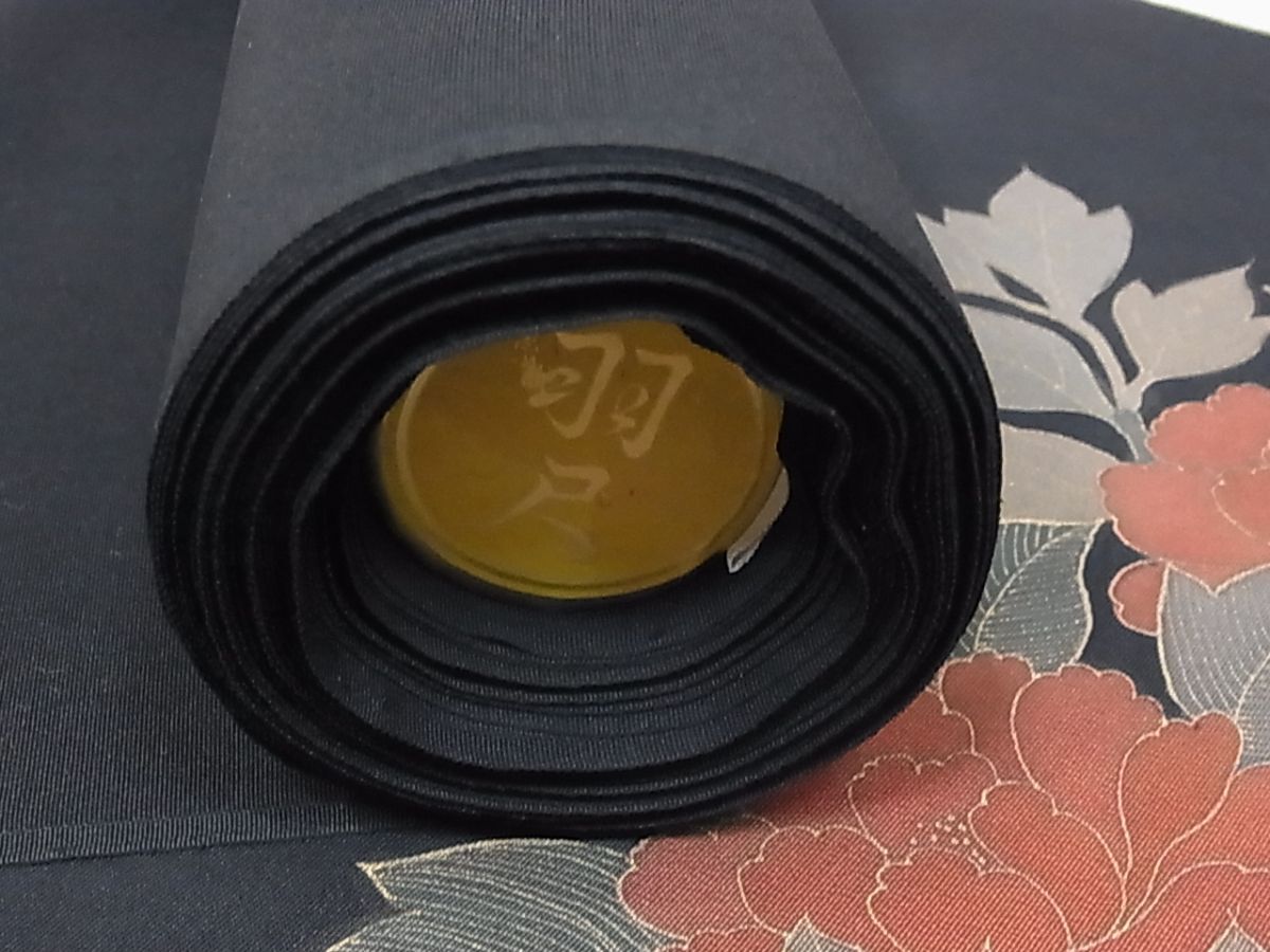 eふれんず◆羽織 コート 和装コート 反物 羽尺 刺繍 草花文 黒色 正絹 未使用品 未仕立て◆bm1783