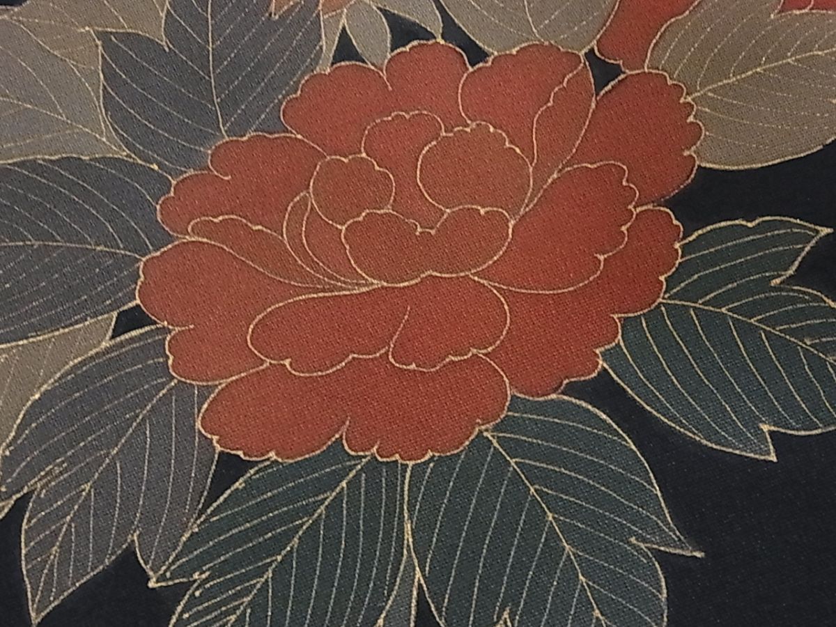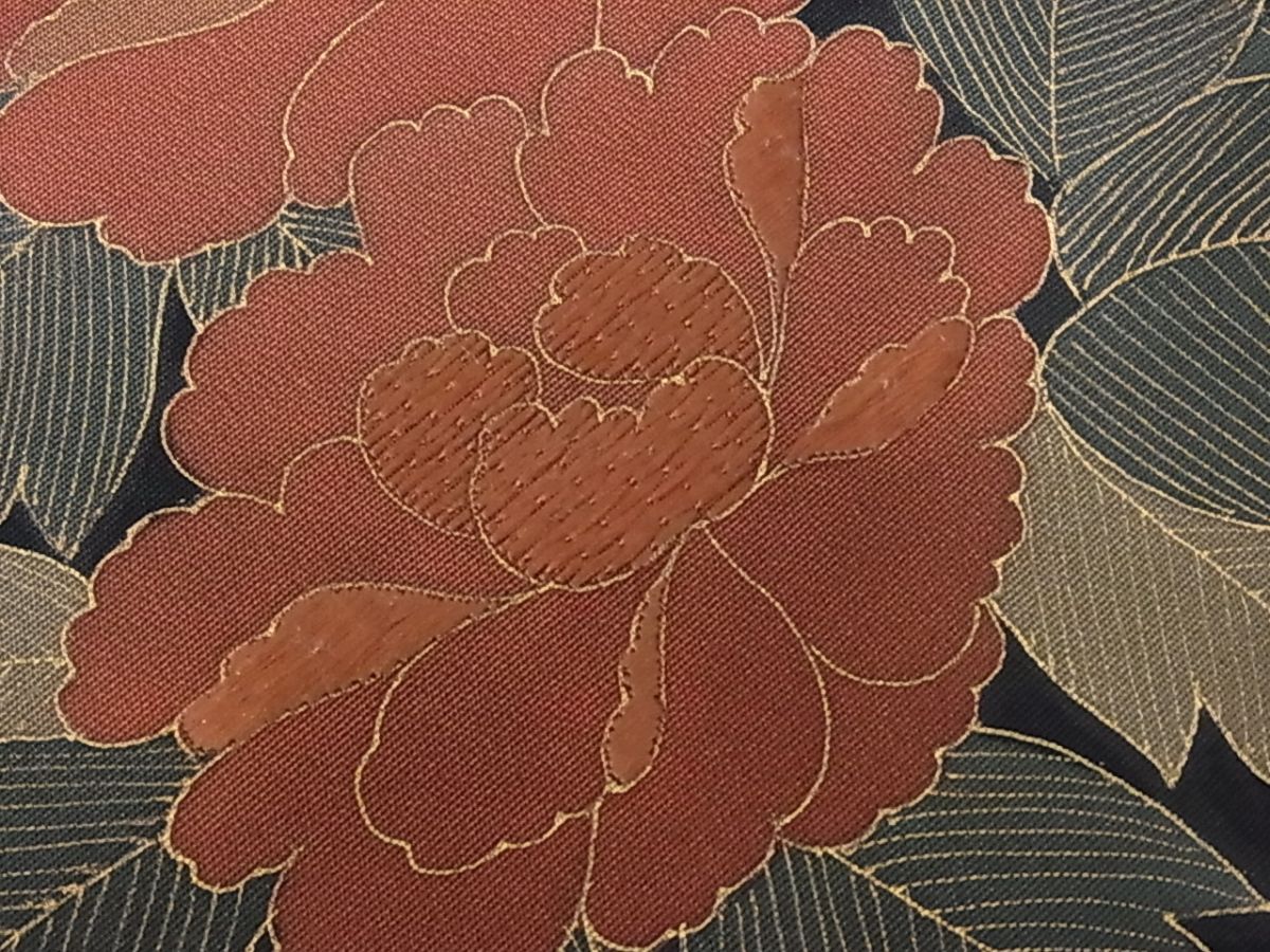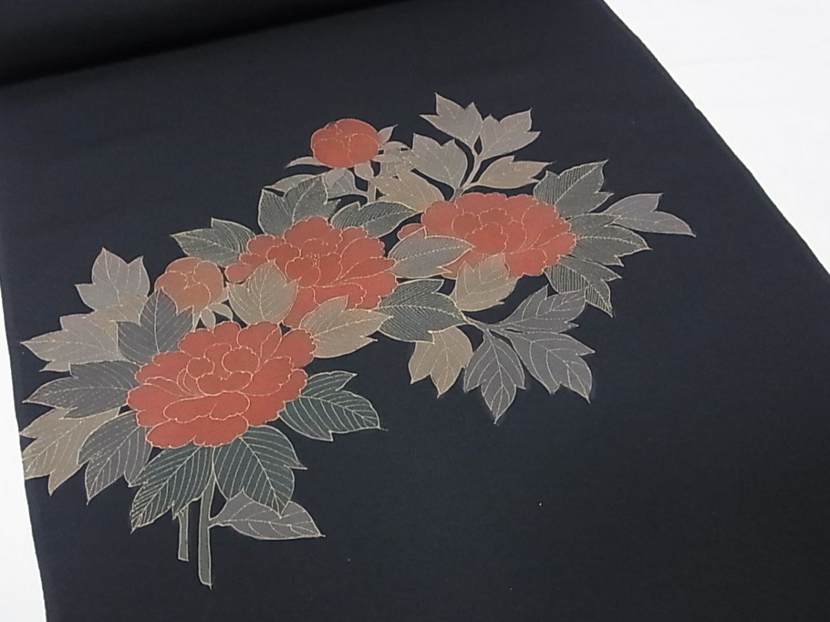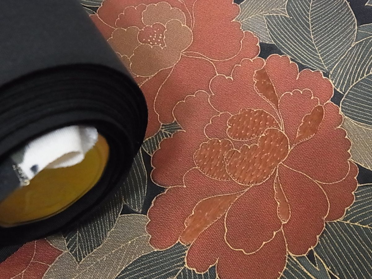 eふれんず◆羽織 コート 和装コート 反物 羽尺 刺繍 草花文 黒色 正絹 未使用品 未仕立て◆bm1783