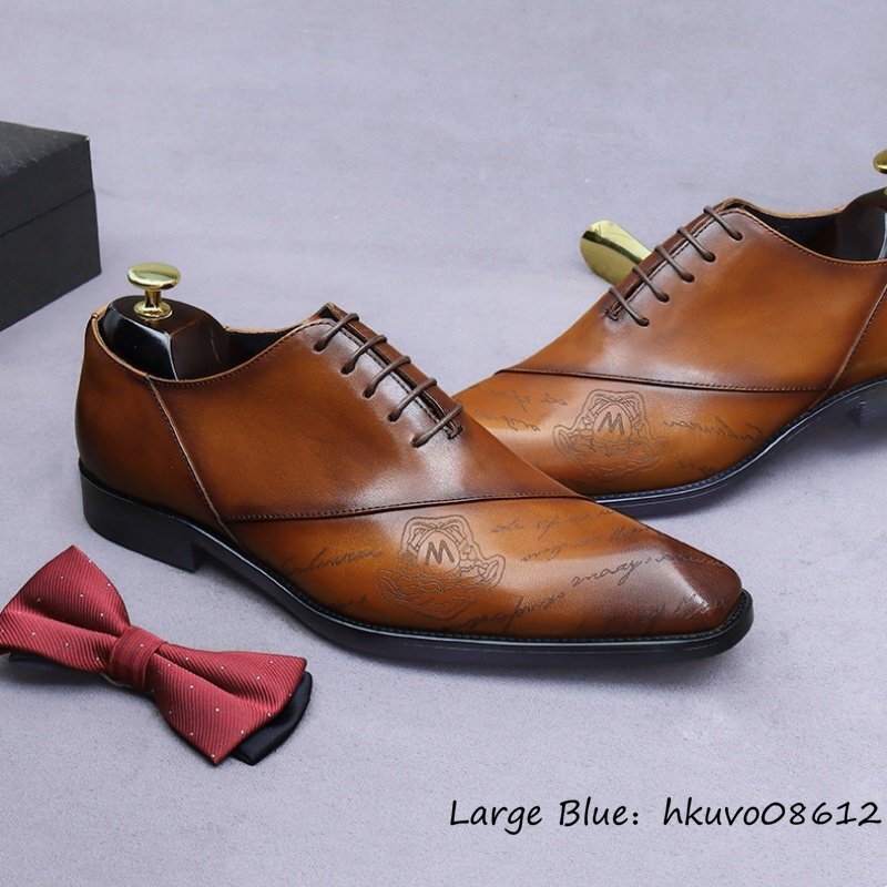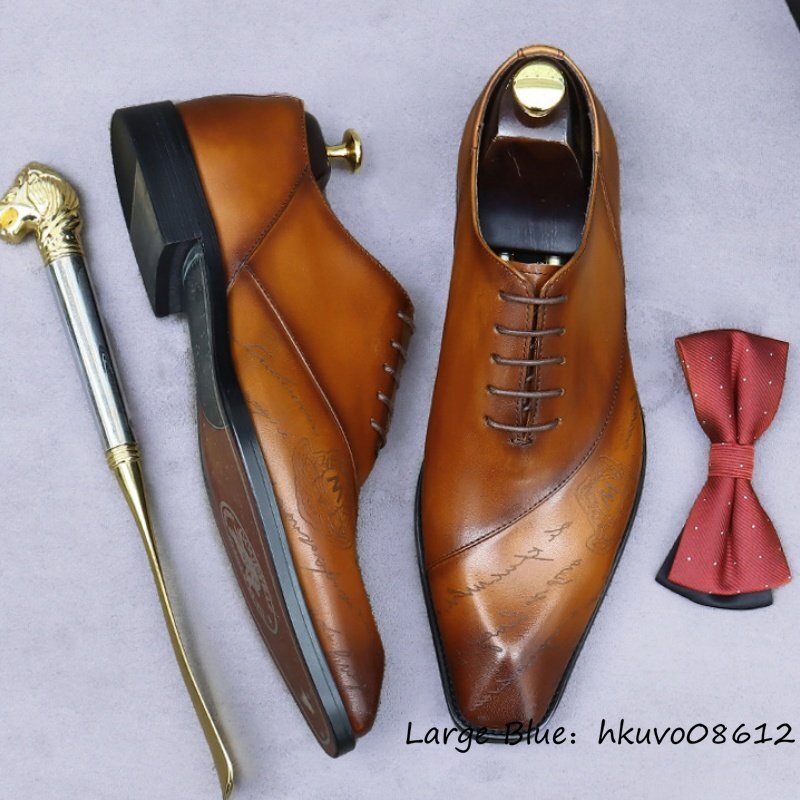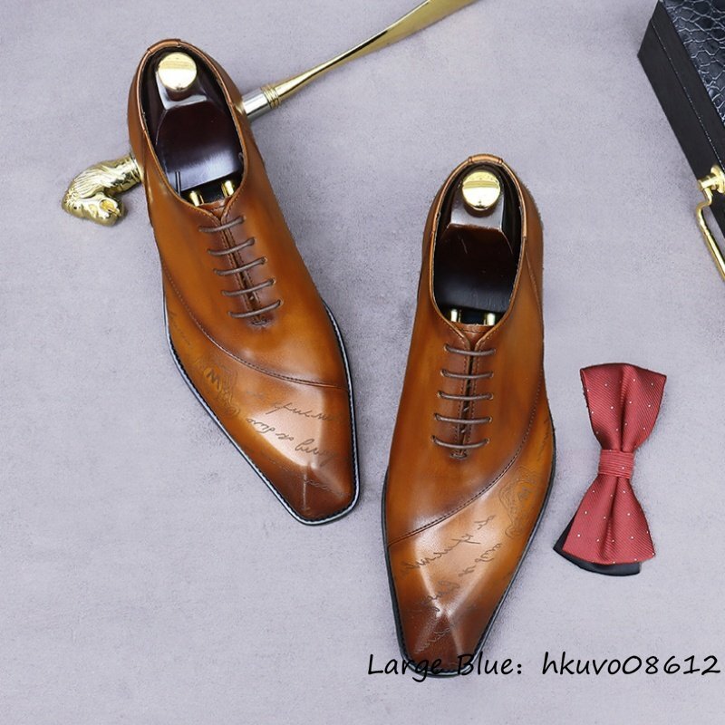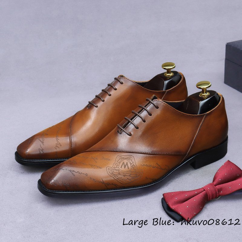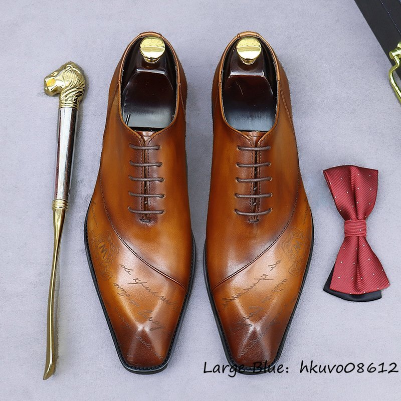 超希少■定価11万超 ビジネスシューズ メンズ 本革 彫り 職人手作り 革靴 レザーシューズ 超希少 紳士靴 牛革 フォーマル ブラウン 24.5cm