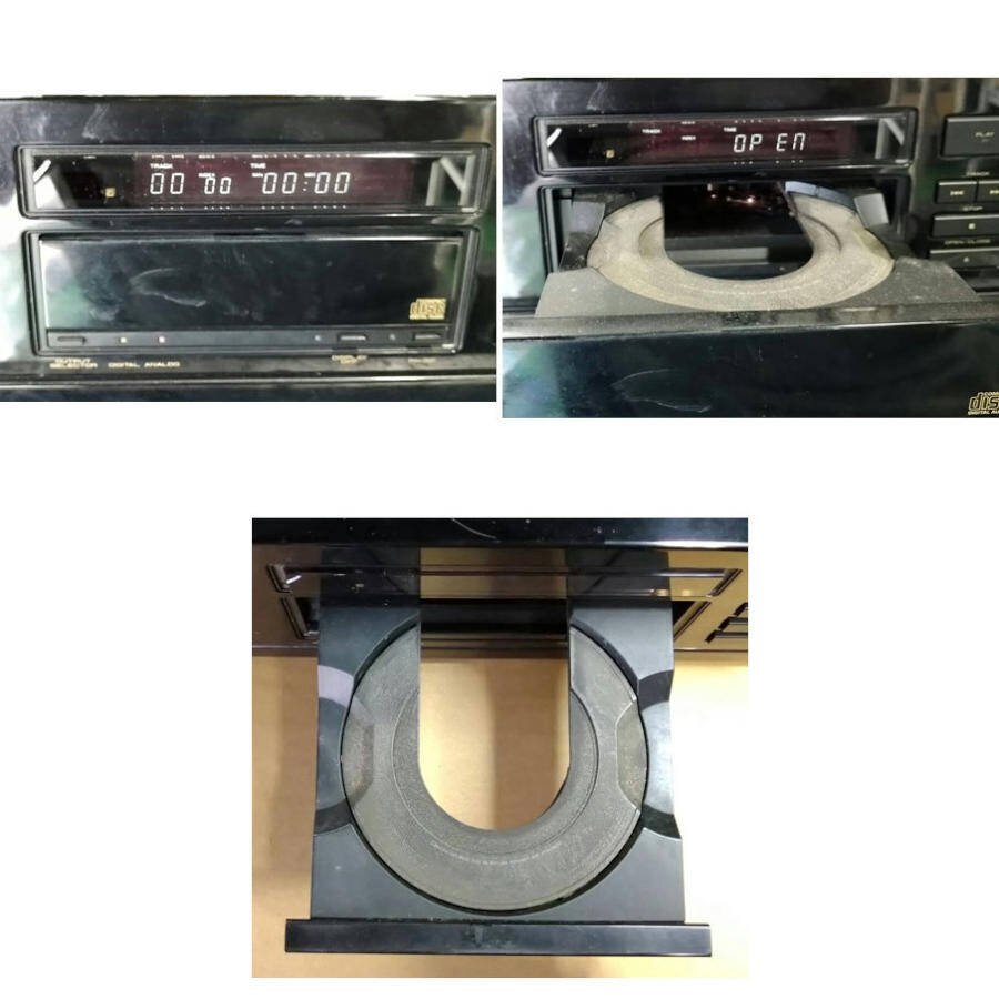 商品状態・電源が入り、表示が出る事を確認しました(写真参考)が、暫くして、OPENと表示されトレイが出てきます(写真参考)