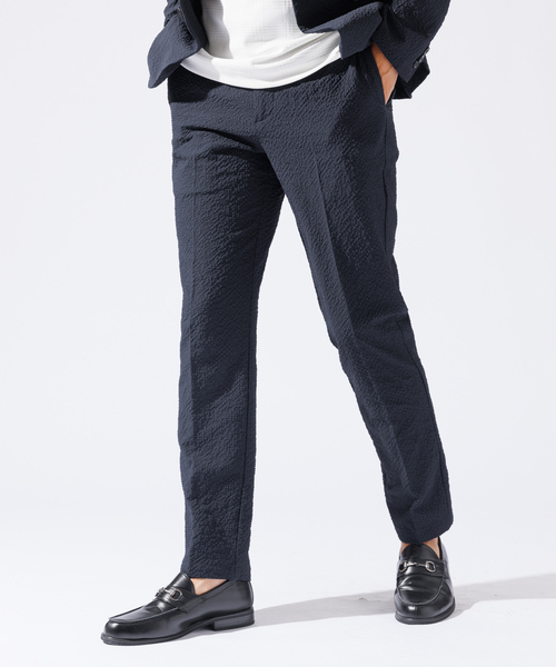 キーワード:スラックス メンズ ウエストゴム スタンダード テーパード フルレングス ローライズ 無地