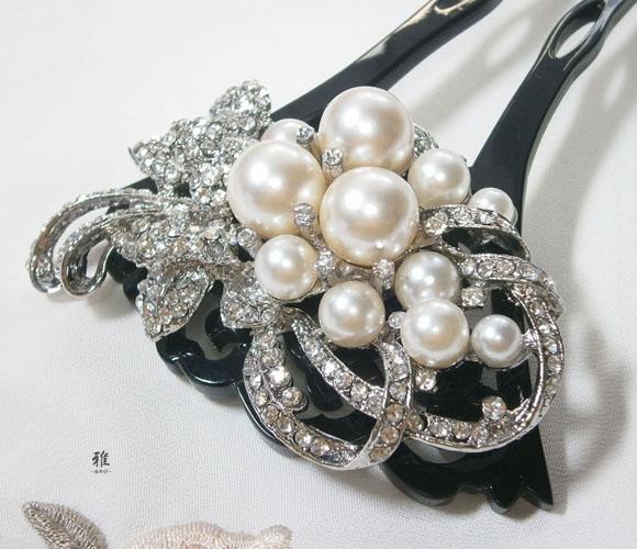 ボリューム感たっぷりのフェイクパールと、品良く散りばめられたラインストーンが