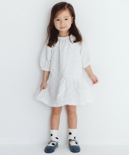 「branshes」 「KIDS」7分袖ワンピース 110 オフホワイト キッズ