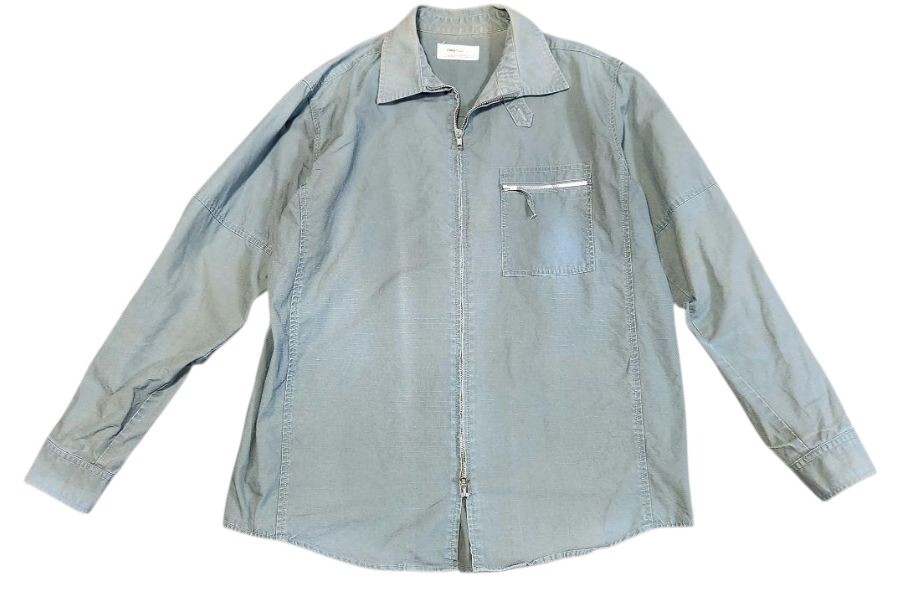 フロントのダブルジップ仕様と胸ポケットのジップデザインが特徴的で、ストリート感とワークテイストを兼ね備えた一枚。