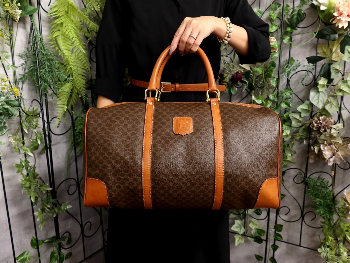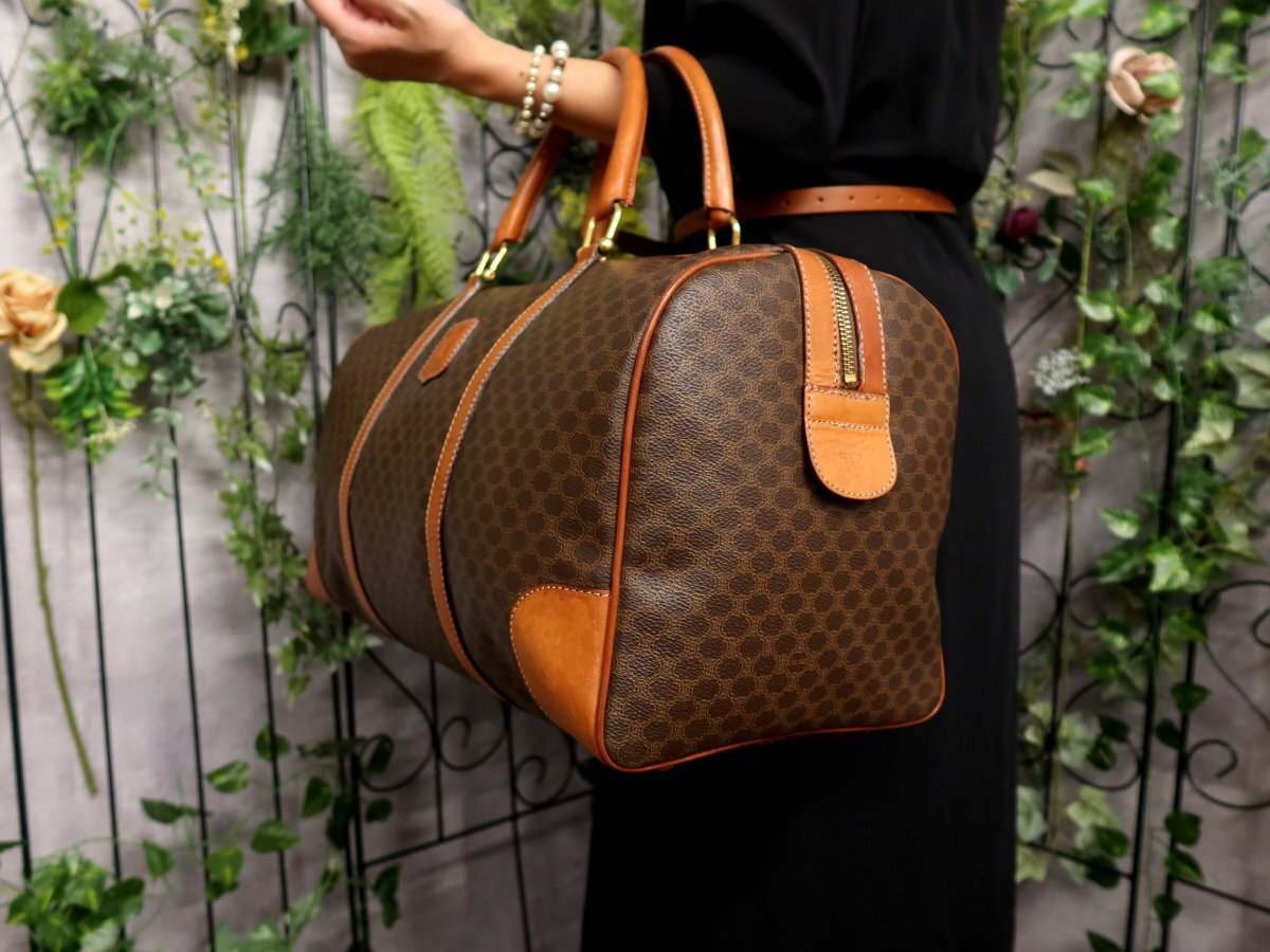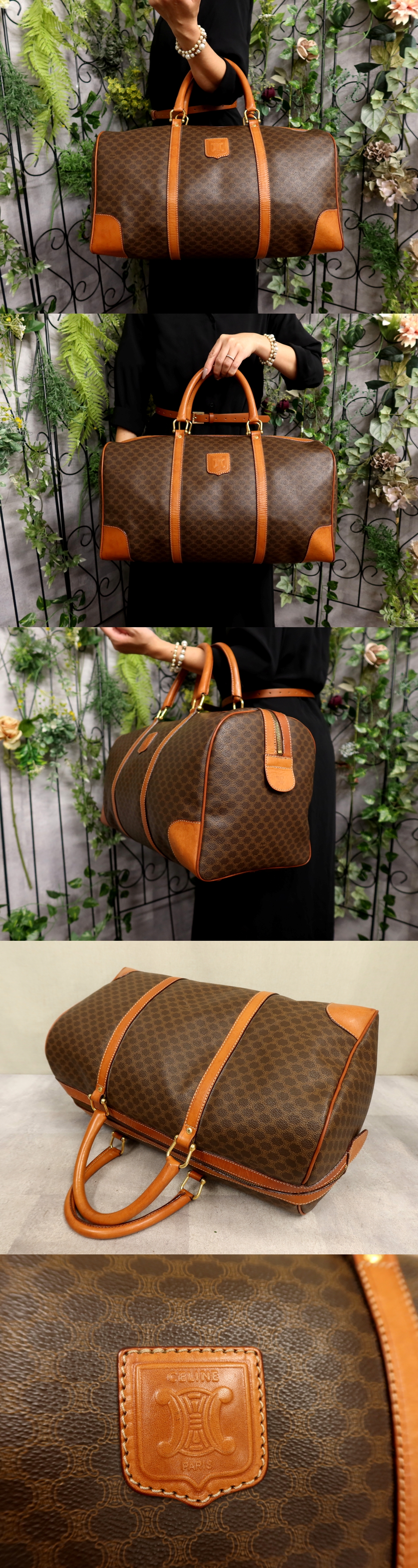 ●美品●CELINE セリーヌ●マカダム●PVC カーフ レザー 本革●ボストン バッグ●ブラウン系●ゴールド金具●ヴィンテージ●収納●Js61095