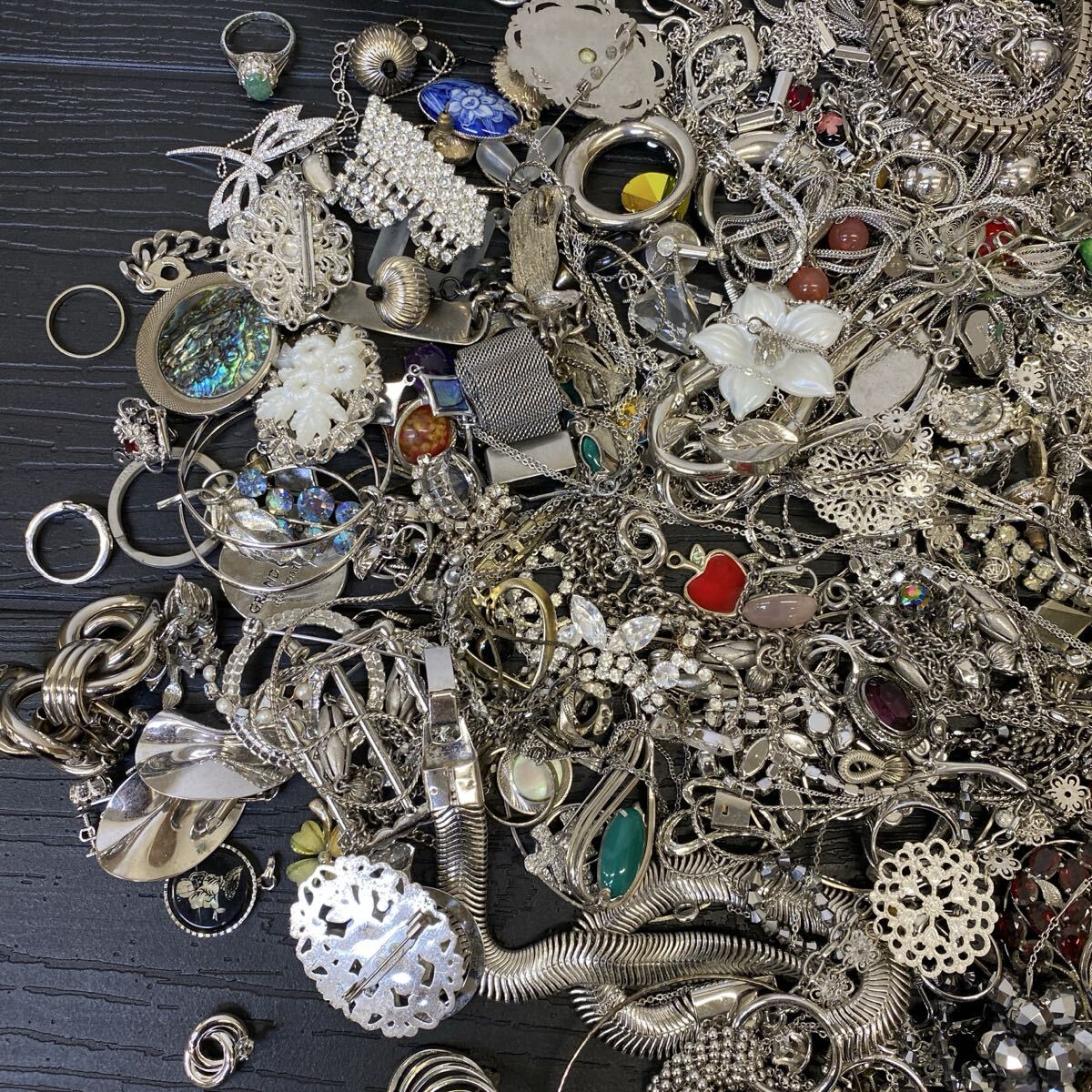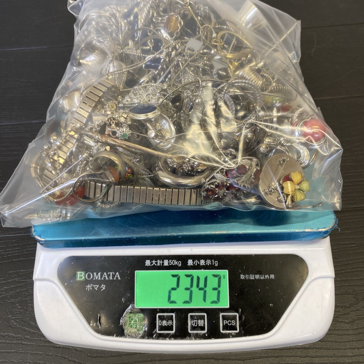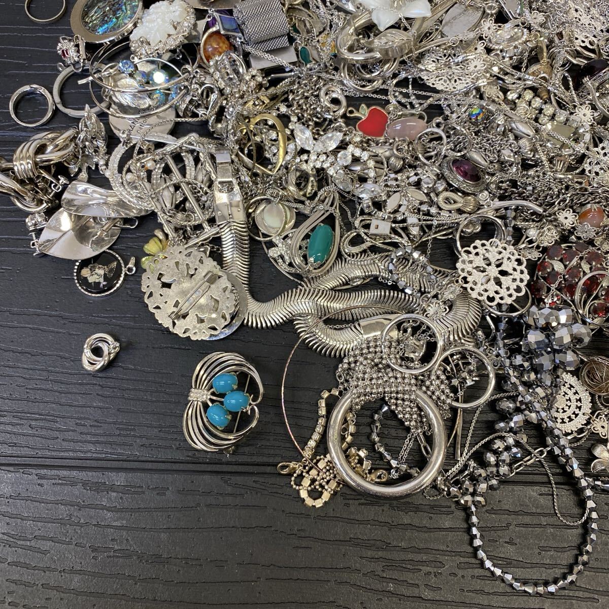 【H-7】 アクセサリー / シルバーカラー / イミテーション まとめ 約2.3kg ネックレス リング ブローチ ピアス イヤリング ブレスレット
