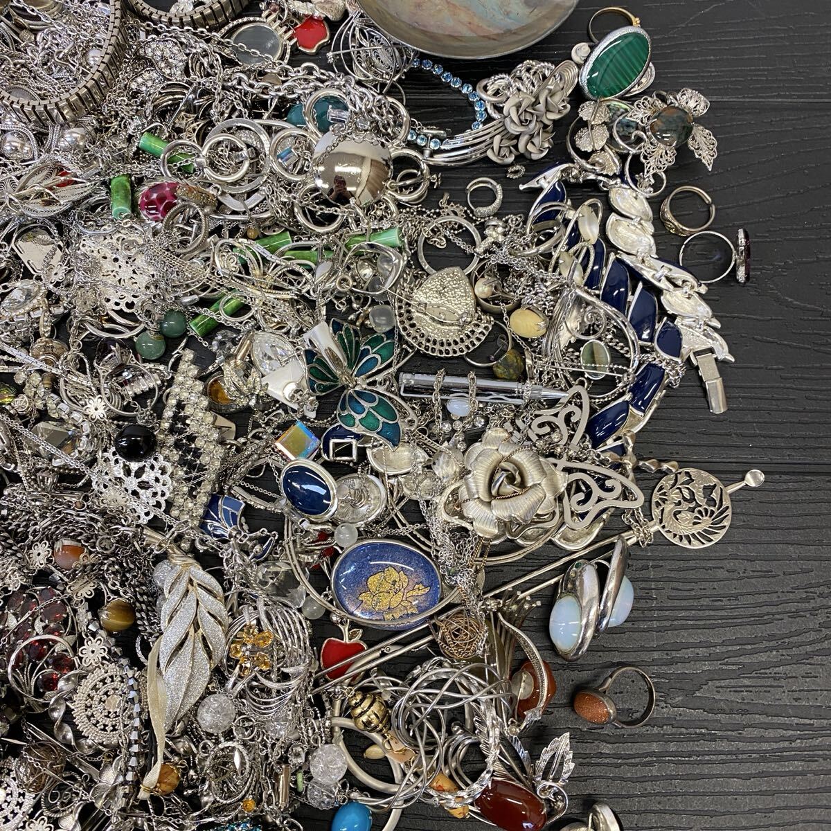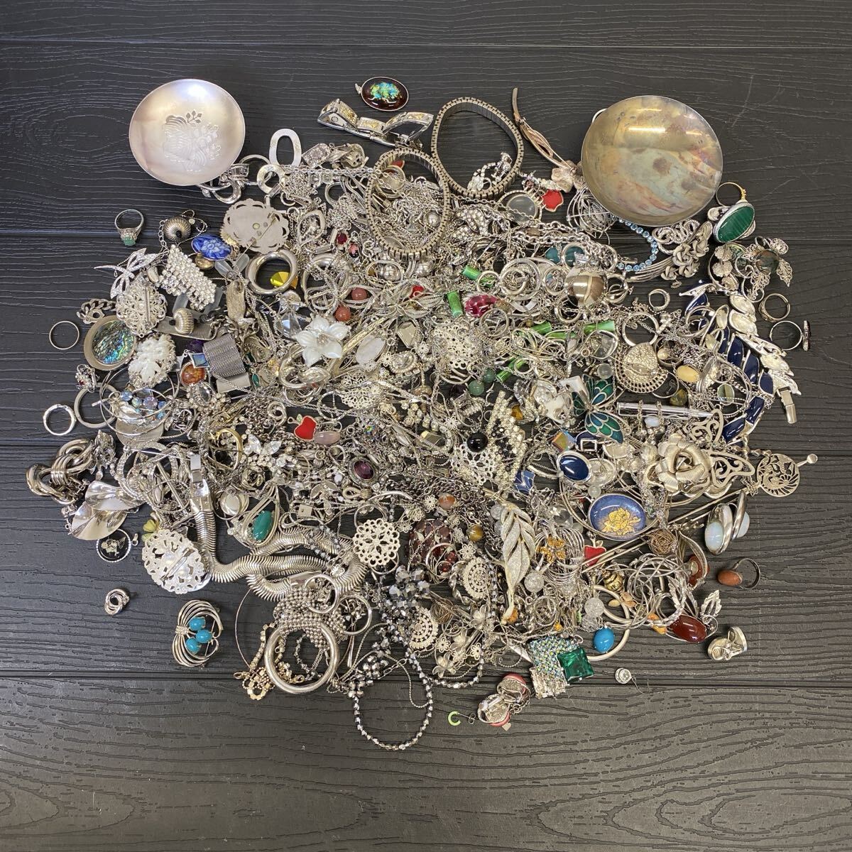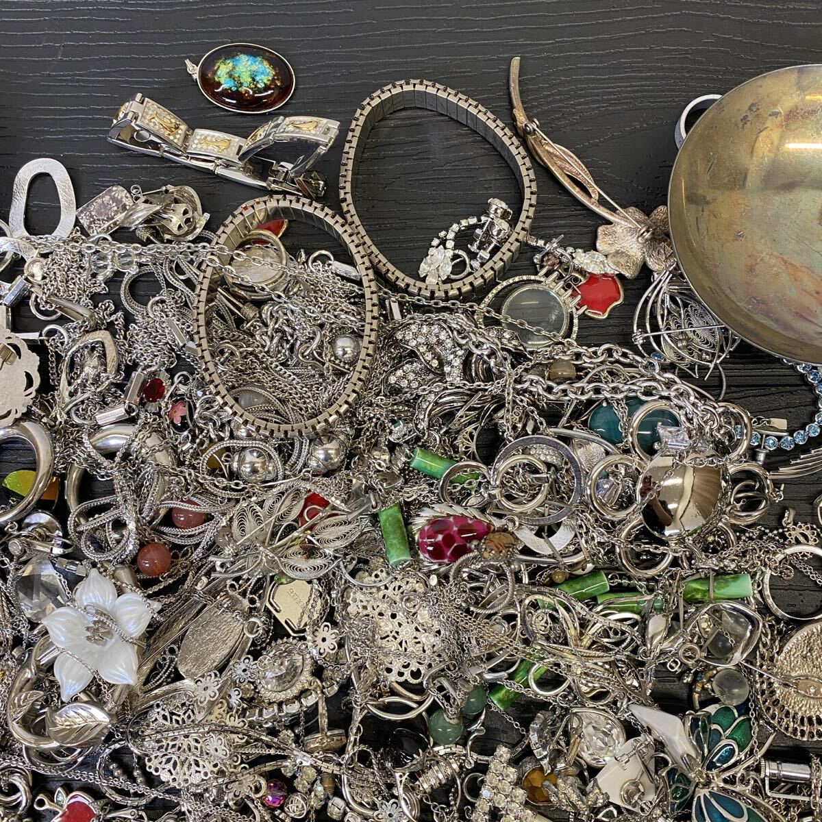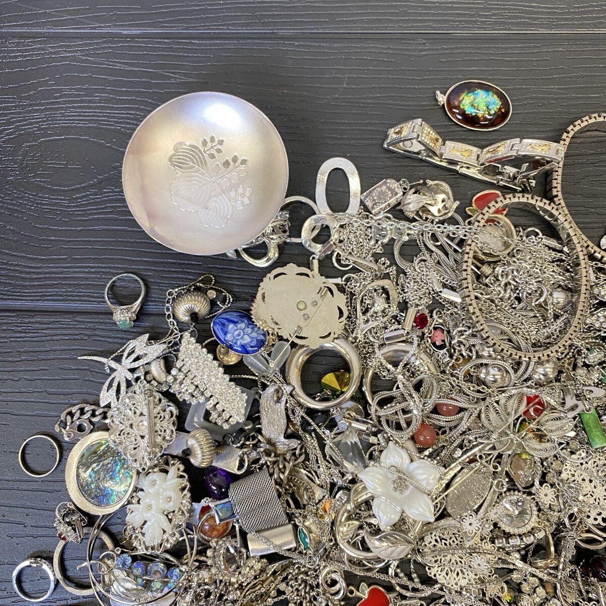 【H-7】 アクセサリー / シルバーカラー / イミテーション まとめ 約2.3kg ネックレス リング ブローチ ピアス イヤリング ブレスレット