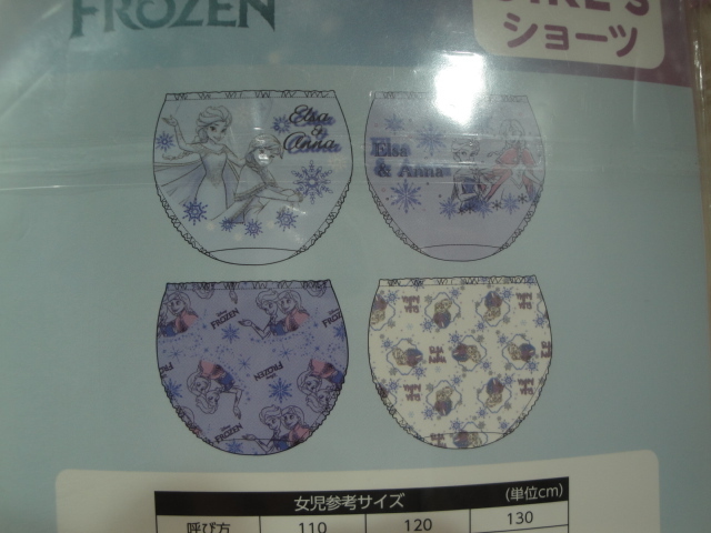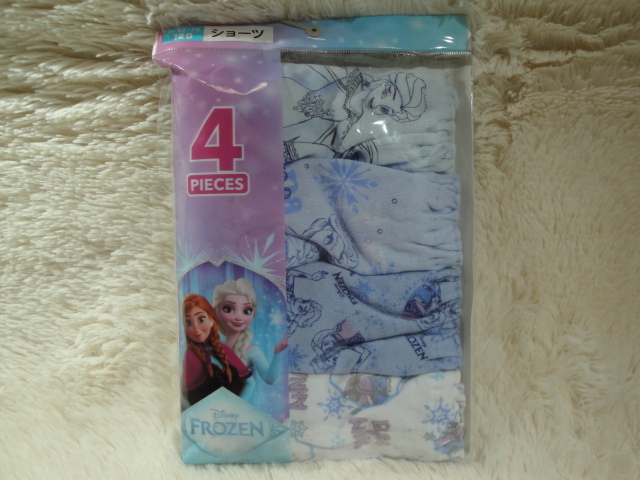 S新品120-732 4枚組 ディズニー アナ雪 ジュニアショーツ  ブルー系 2枚 バックプリント + 白・ブルー 総柄