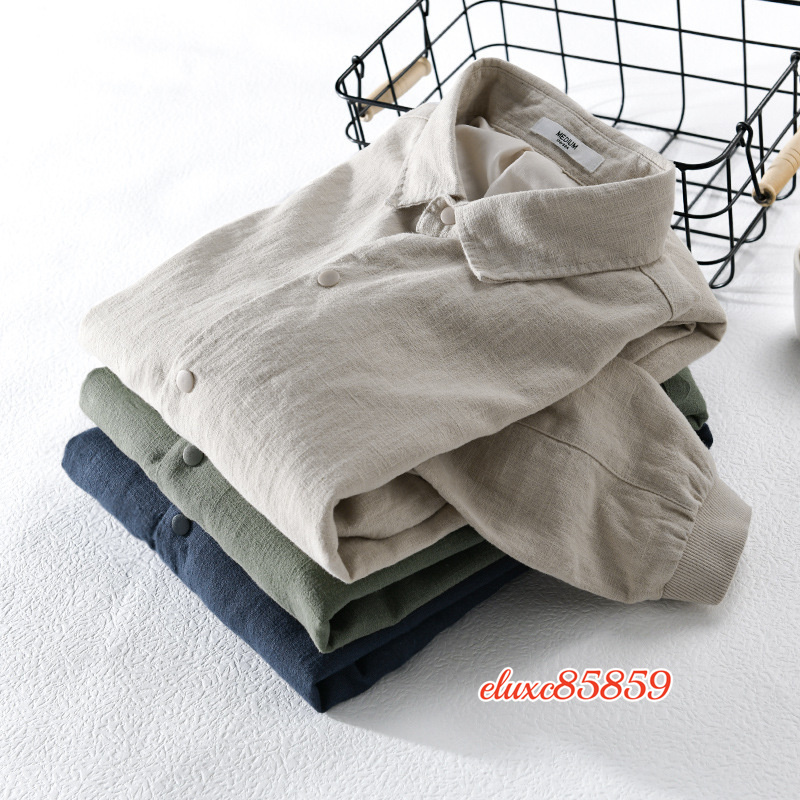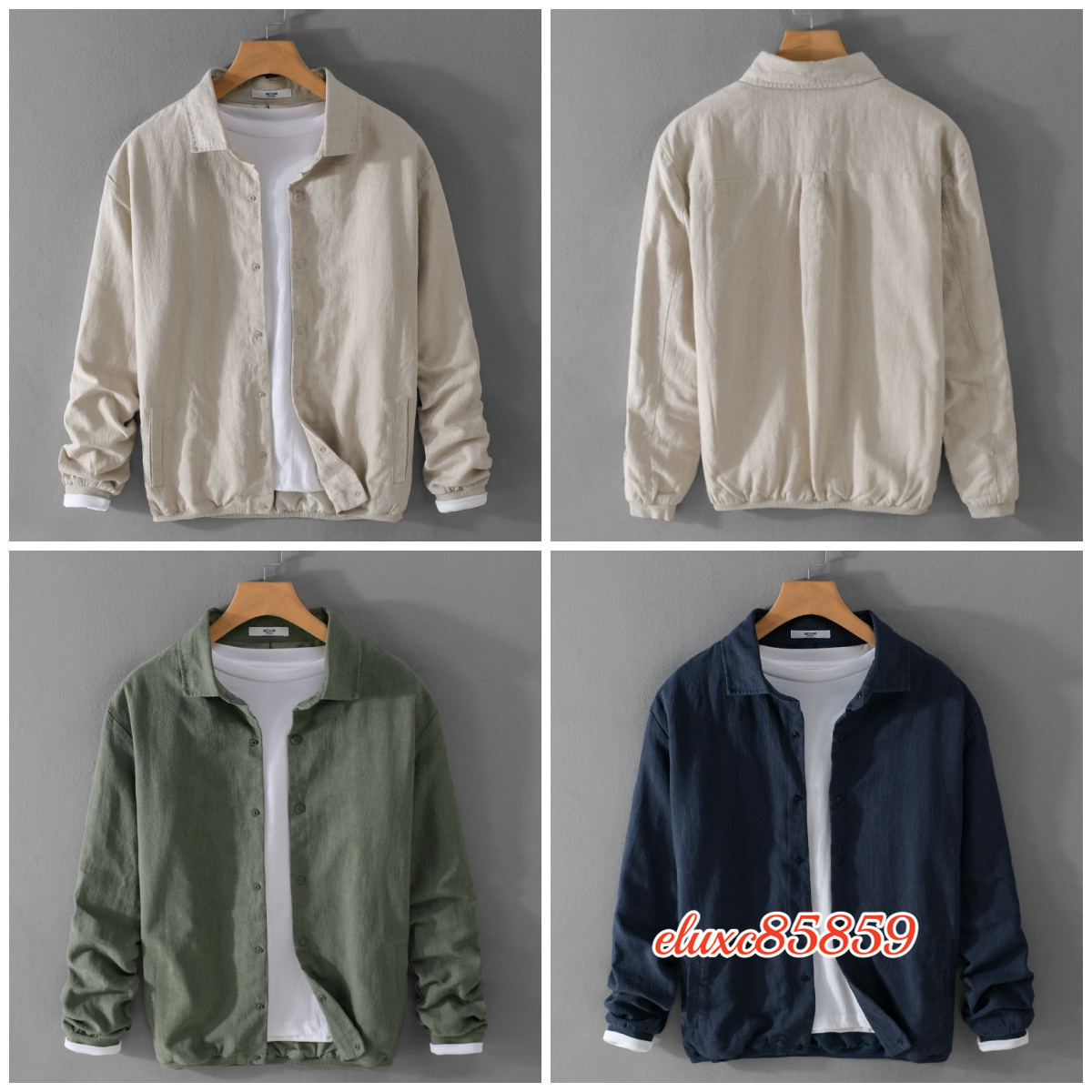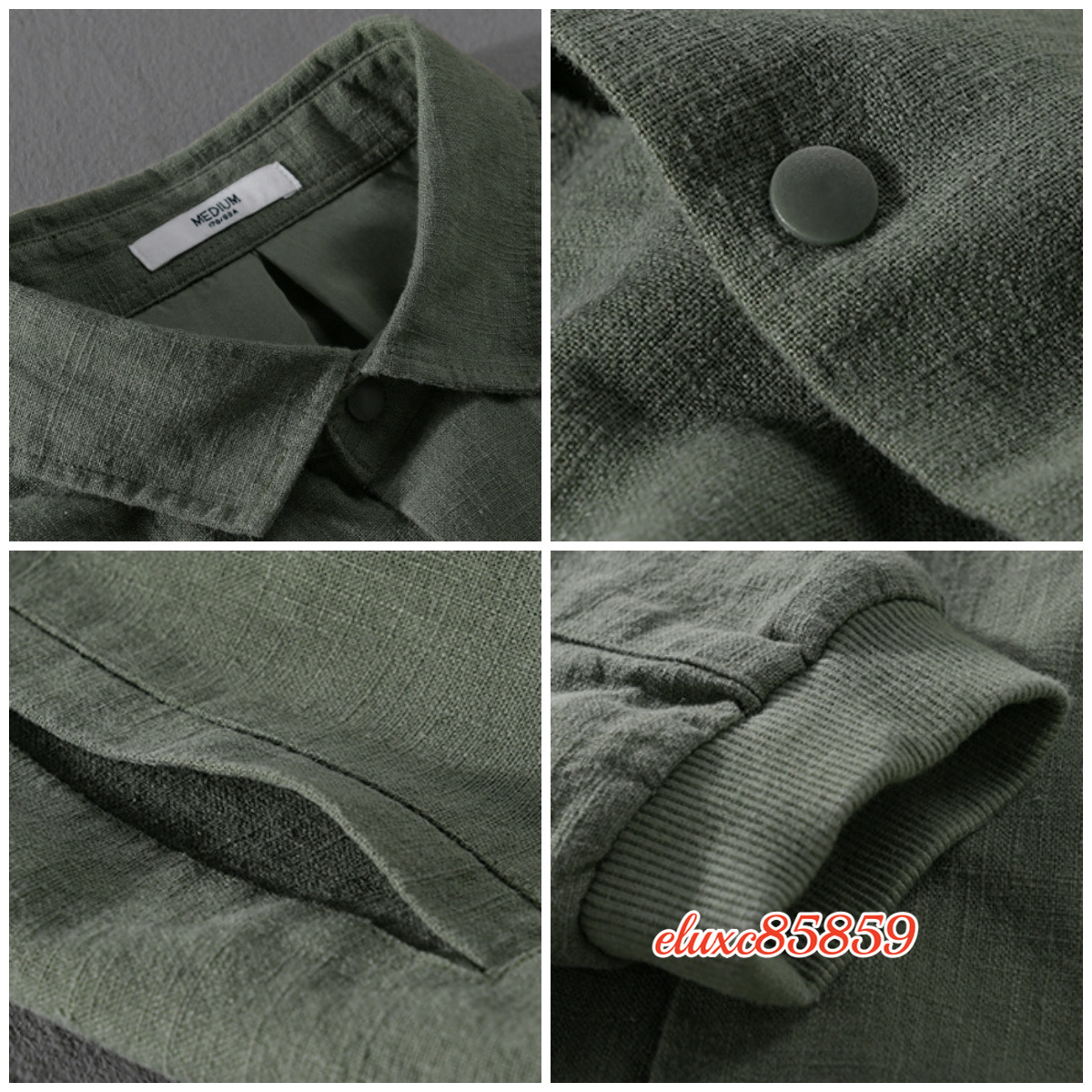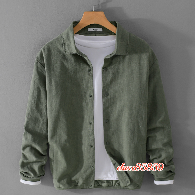 秋新品 メンズ リネンジャケット 綿麻 ジャンパー ブルゾン 無地 カジュアルジャケット 紳士 通勤 アウター サイズ選択可L オリーブ