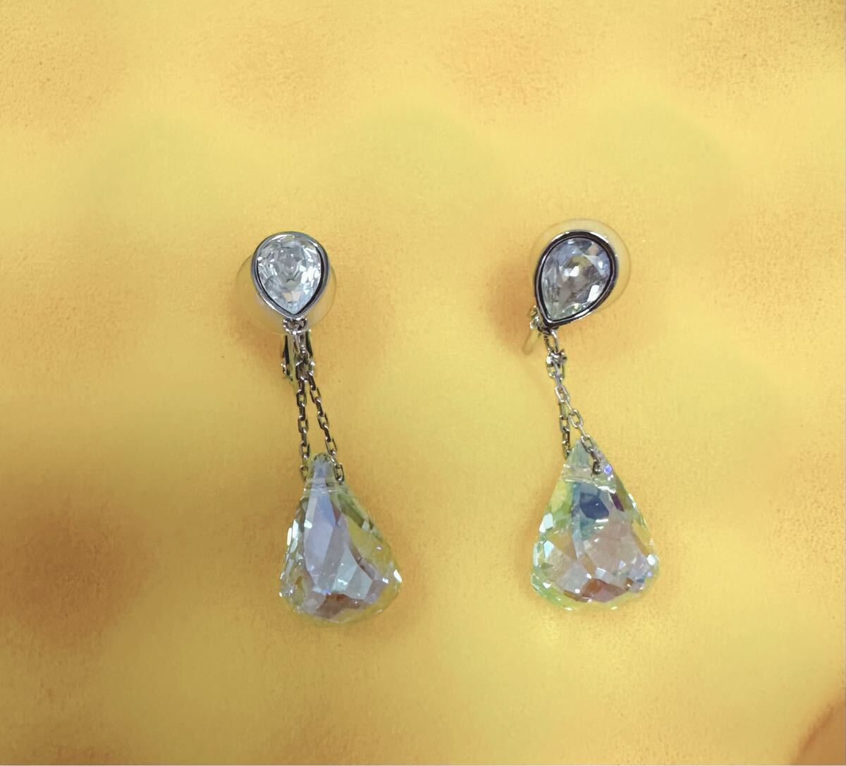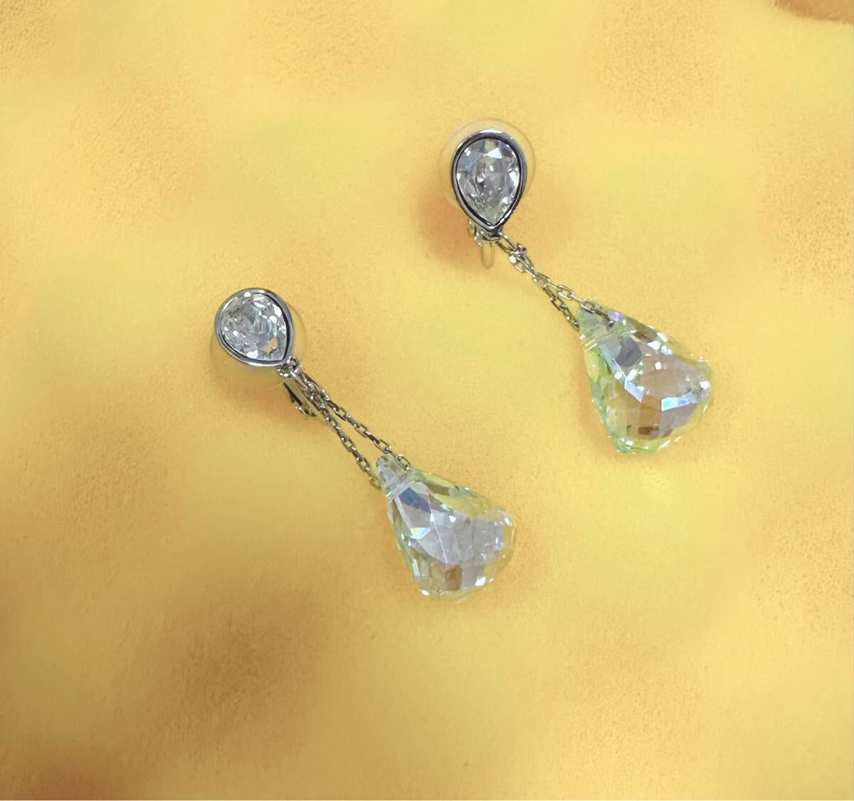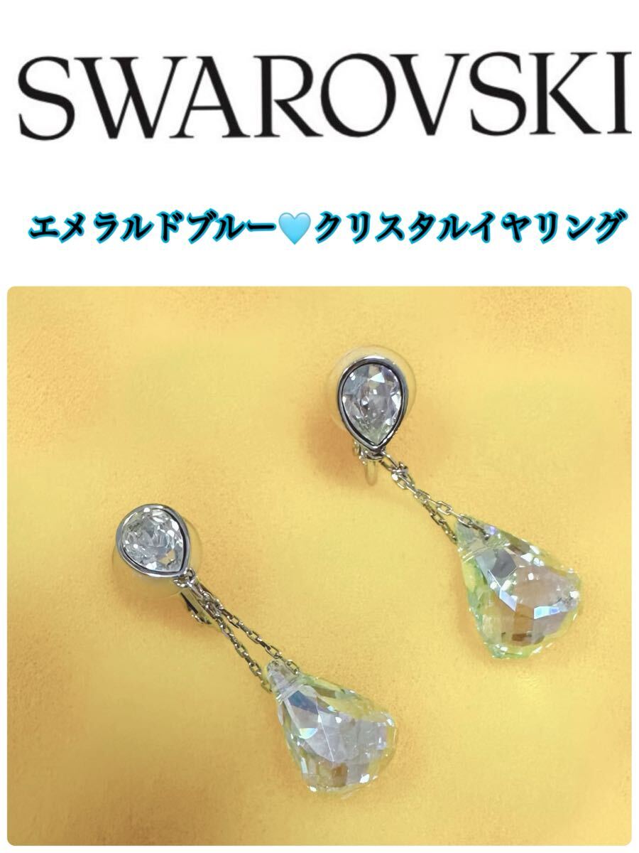 スワロフスキーエメラルドブルークリスタルイヤリング