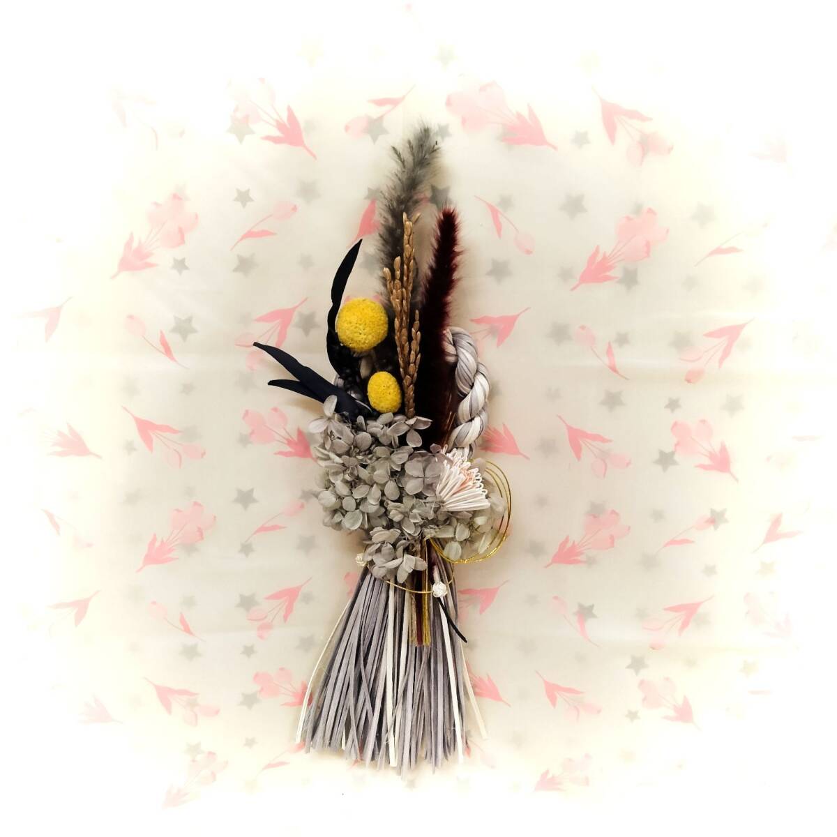 アーティフィシャルフラワーと水引を組み合わせたしめ縄です。