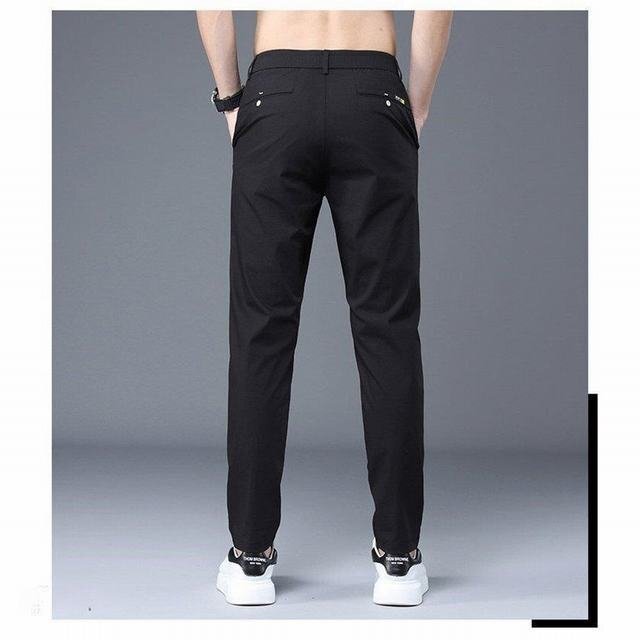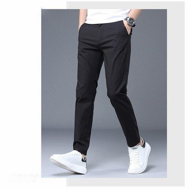 細身 美脚 涼しいズボン メンズ ストレッチ 接触冷感 夏物 無地 チノパン ゴルフパンツ 薄手 通気性 伸縮 黑 サイズ 29