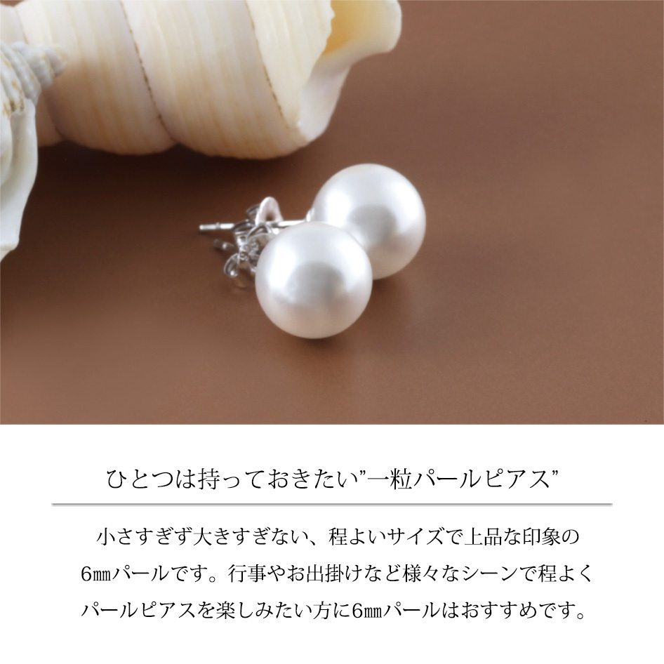 新品/ピアス/一粒/パール/6mm/小さい/真珠/シンプル/シルバー/レディース/両耳/フォーマル/普段使い/銀/SV925 刻印