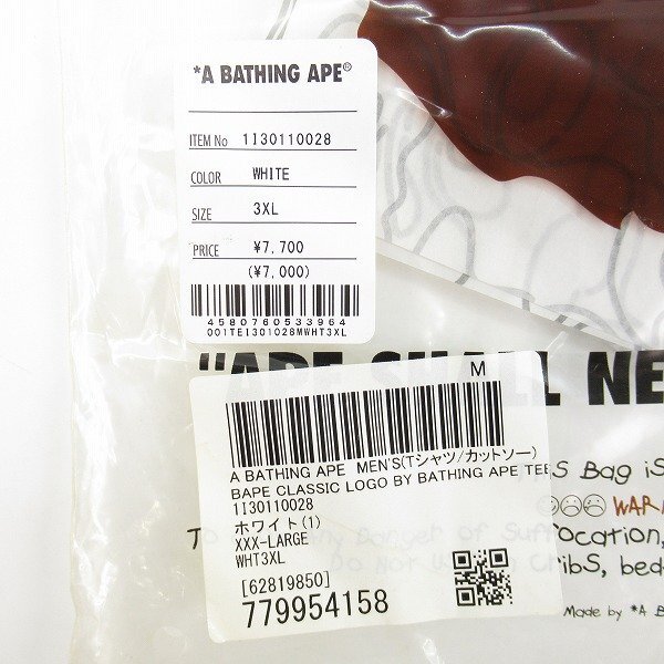 ☆A BATHING APE/アベイシングエイプ BAPE CLASSIC LOGO TEE/Tシャツ 1I30110028/3XL /UPK | ||||||||||||||||||||||||||||||