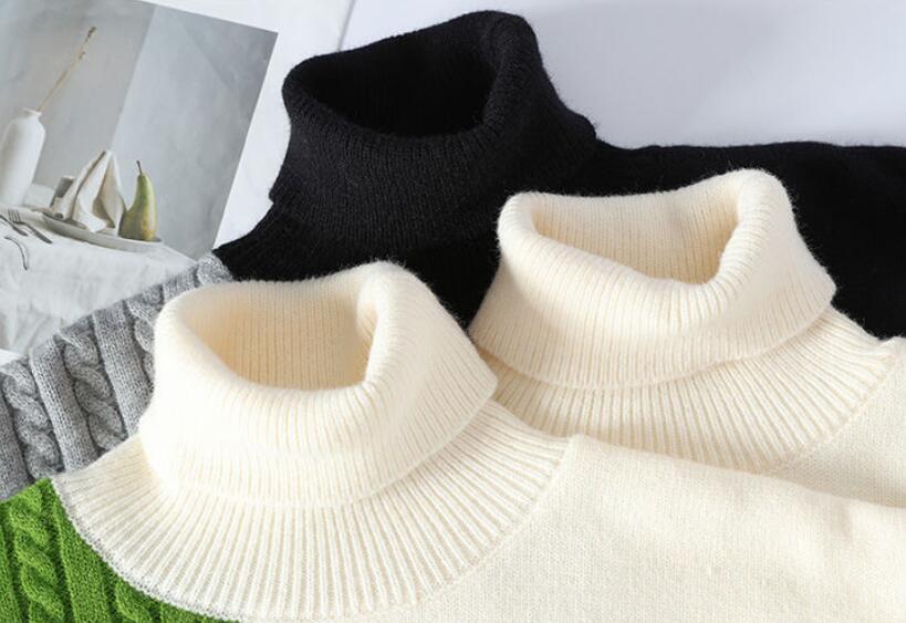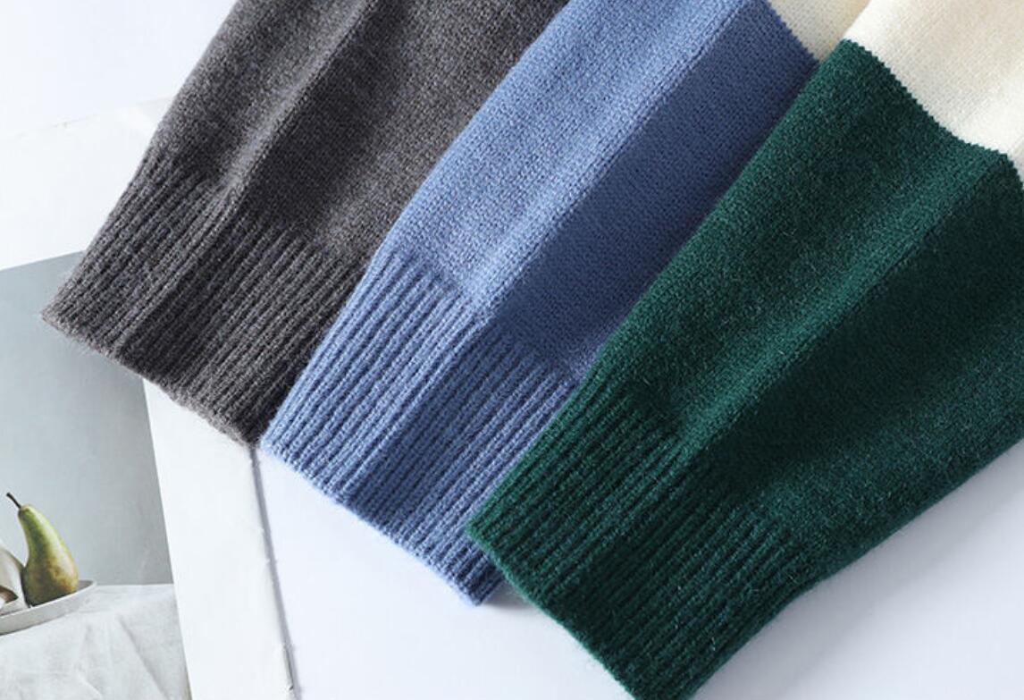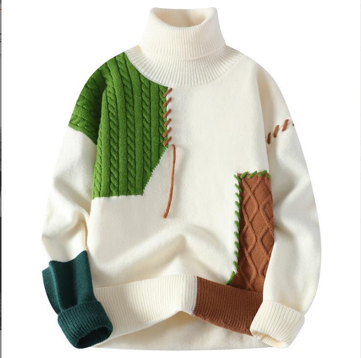 人気品L 新品 メンズ ニットセーター ウール混 プルオーバー トップス タートルネック 編み カラーブロック 3配色 秋冬/ブラック