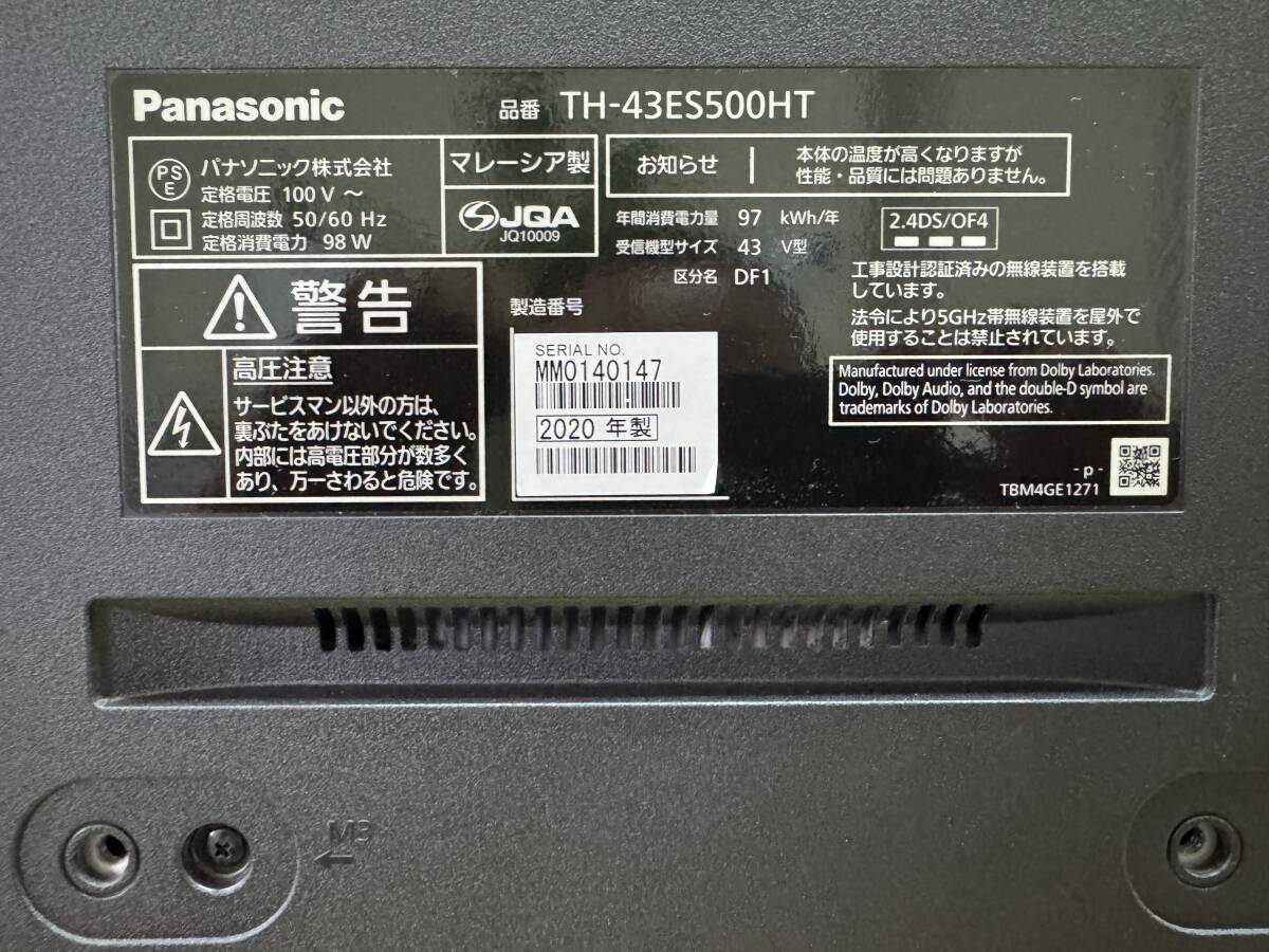 2020年製 Panasonic VIERA 43型 TH-43ES500HT パナソニック 液晶テレビ 動画アプリ NETFLIX YouTube Amazon prime hulu DMM 管理F1608