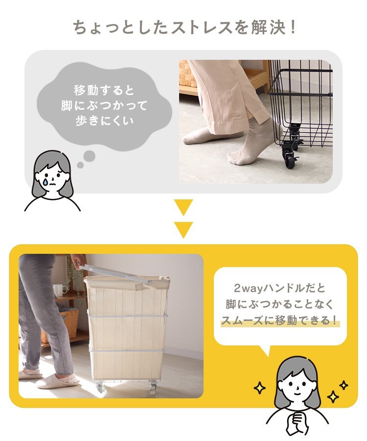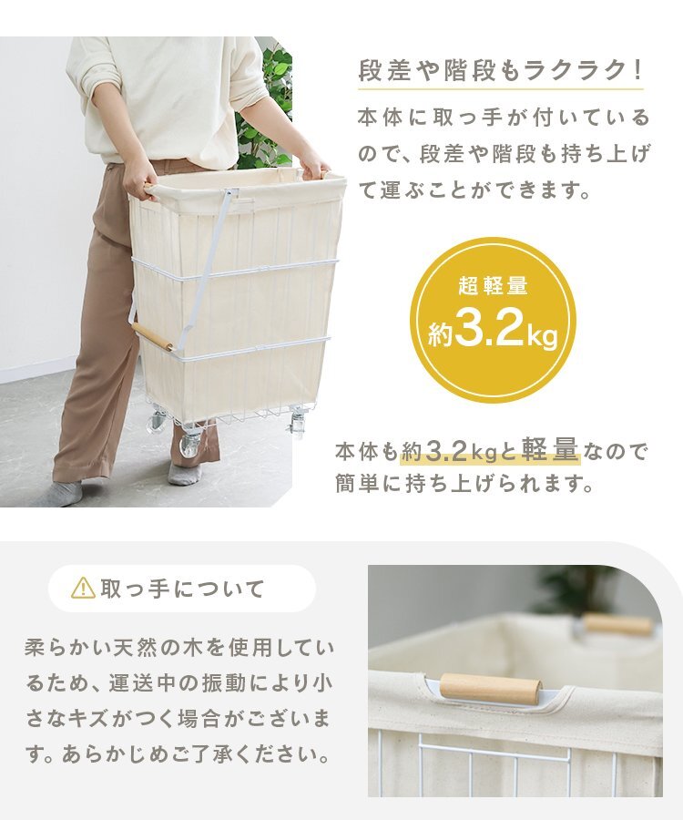 おしゃれで機能的!取っ手付きランドリーバスケットです。 大容量61Lでたっぷり収納! 取っ手付き&360度回転キャスターで移動もラクラク♪ ■スタイリッシュで優れた機能性 開口部が広いので物が取り出しやすい! 耐荷重約15kgと家族分の洗濯ものもまとめて入ります。 シンプルなデザインなのでお部屋のインテリアにも馴染みます。 360度キャスター付きでスムーズに移動ができます。 ストッパー付きなので、安全面も安心◎ ■便利な2WAYハンドル ハンドルの使い方は2種類。シーンに合わせて使い分けできます。 ショートスタイルは小回りがきき、スムーズに方向転換ができます。 ロングスタイルは移動時に足に当たらず便利!お子様の使用時にもオススメ◎ ■持ち運びにも便利♪ 洗濯ものが外から見えないので、クリーニングやコインランドリーに持っていく際にも便利です。 大きな毛布やシーツも入ります。 ファブリックカバーは内側にラミネート生地を使用。カビや汚れに強い撥水加工を施しています。 丈夫なスチールフレームなので、さびにくく、長くお使い頂けます。 《使い方いろいろ♪》 ・キッチンストック収納 ・ごみ箱として ・おもちゃ収納 【商品仕様】 商 品 詳 細 カラー: ブラック サイズ: 約幅31×奥行48×高さ66cm 重量:約3.2kg 容量:約61L 耐荷重:約15kg ランドリーバスケット キャスター付き おしゃれ 北欧 61Lの大容量!省スペース&シンプルですっきり!取っ手付きで移動もラクラク!カバー付きで中が見えない ランドリーバスケット スリム 61L 大容量 布 カバー 隠せる キャスター付き オシャレ ランドリー収納 ランドリーラック ランドリーワゴン ワイヤーバスケット 洗濯物入れ かご 洗濯かご 脱衣かご 収納 一人暮らし ランドリーバスケット 2段 3段 1段 大容量 ワイヤーバスケット ランドリーラック 洗濯物入れ かご 洗濯かご 洗濯物 脱衣かご ランドリー収納 ランドリーボックス 洋服 衣服 収納 おもちゃ収納 雑貨入れ おしゃれ シンプル 北欧 西海岸 人気 おすすめ WEIMALL |