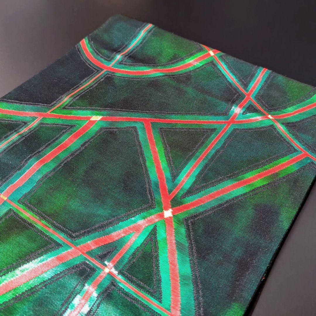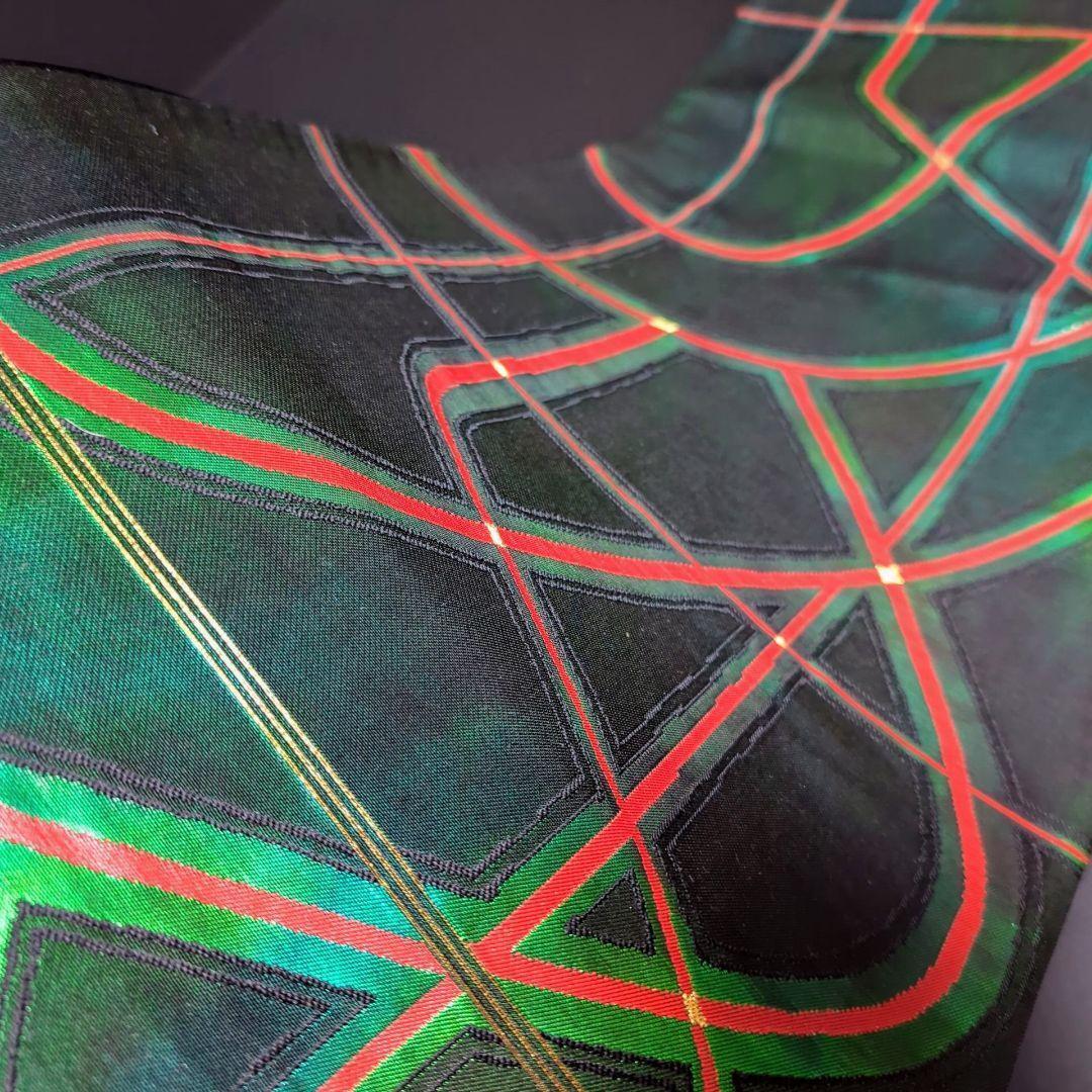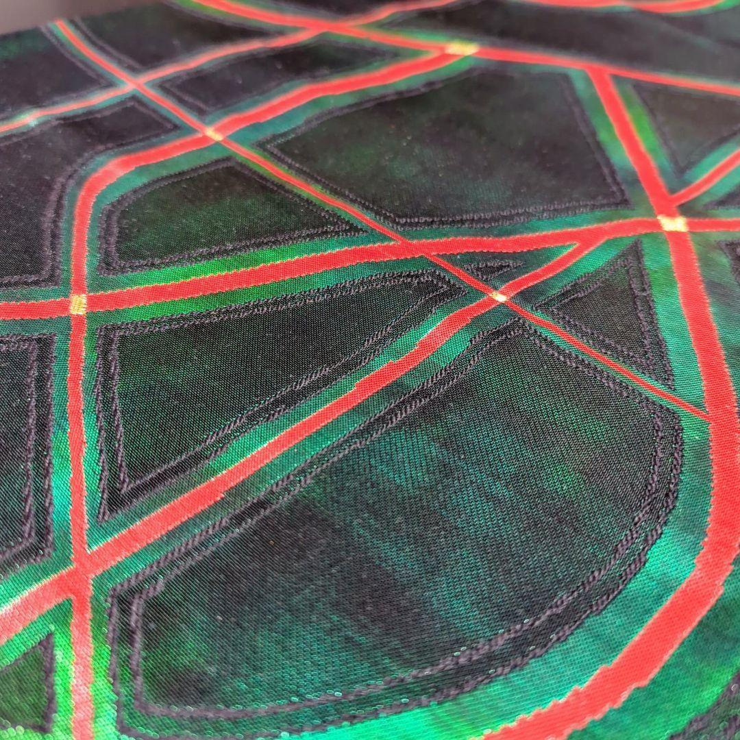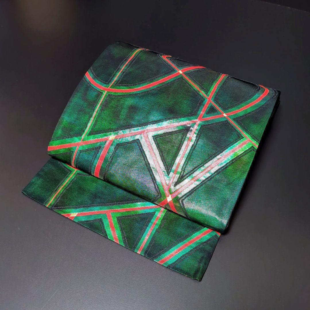 正絹 六通 漆箔 幾何学模様 緑 グリーンの袋帯になります^ ^