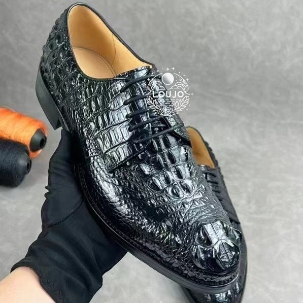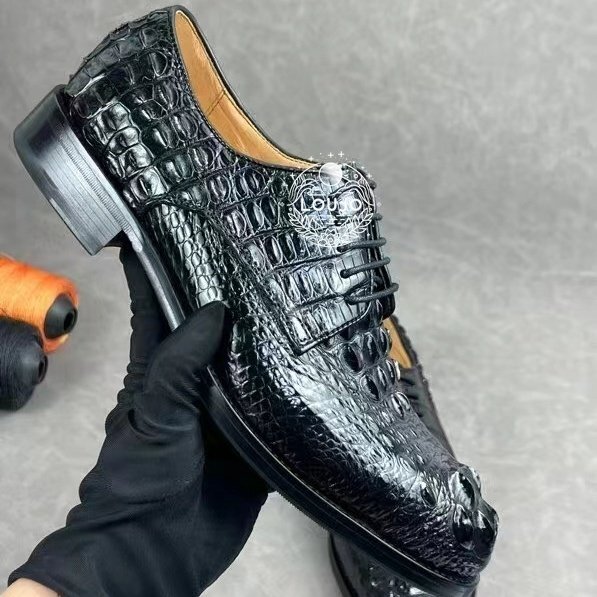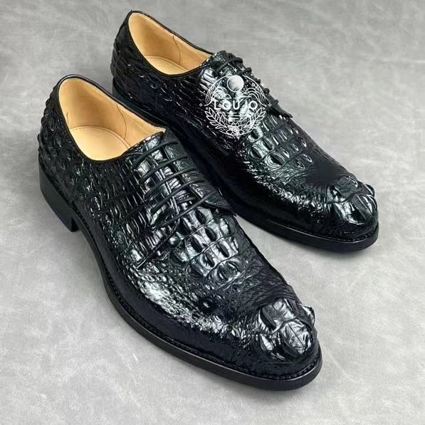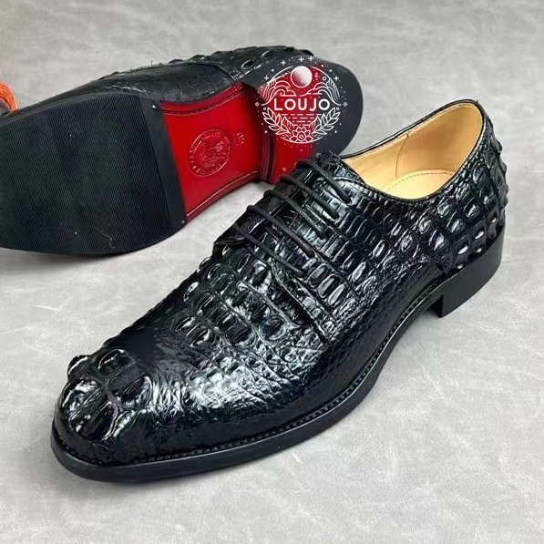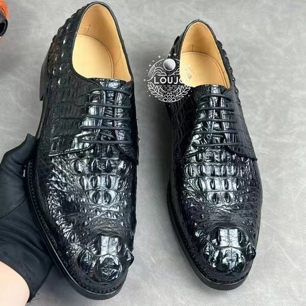 本物ワニ革 クロコダイルレザー メンズ 紳士靴 ビジネスシューズ 広幅 黒 通勤 サイズ可選24.0-27.0cm