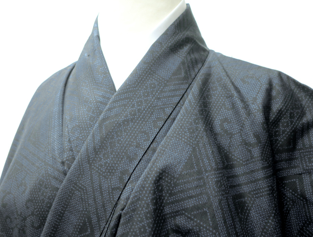 リサイクル商品のため、胴裏や衿裏にスナップボタンによる汚れがございますが着用可能なお品です。 地色は、藍色です。 1枚目の画像が近いお色かと思われます。 素材は正絹です。 |