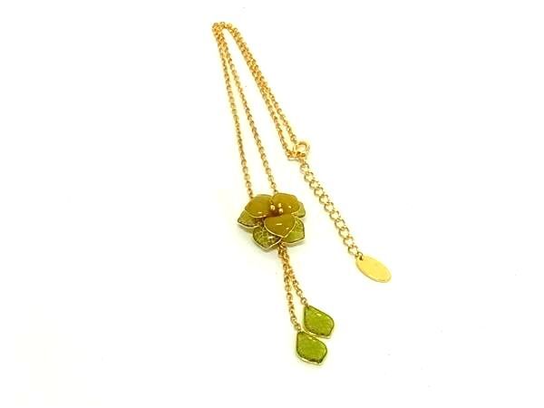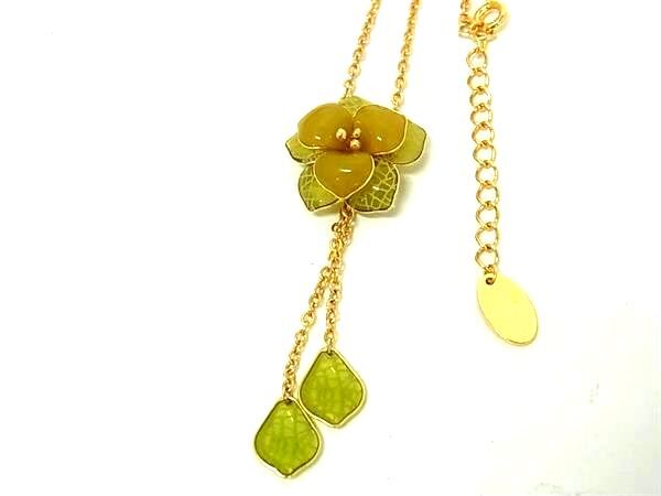 ■極美品■ GIANNI VALENTINO ジャンニ ヴァレンティノ フラワー 花 ネックレス アクセサリー ゴールド系×グリーン系 DI1481