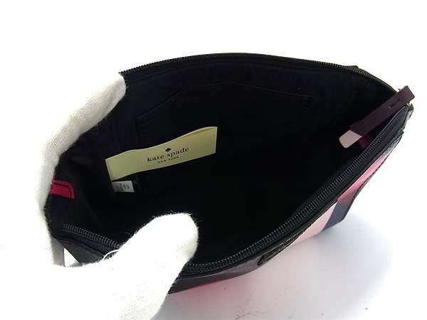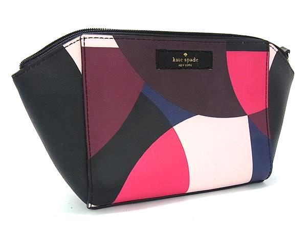 kate spade ケイトスペード レザー メイクポーチ マルチケース 小物入れ レディース ブラック系×マルチカラー DI3783