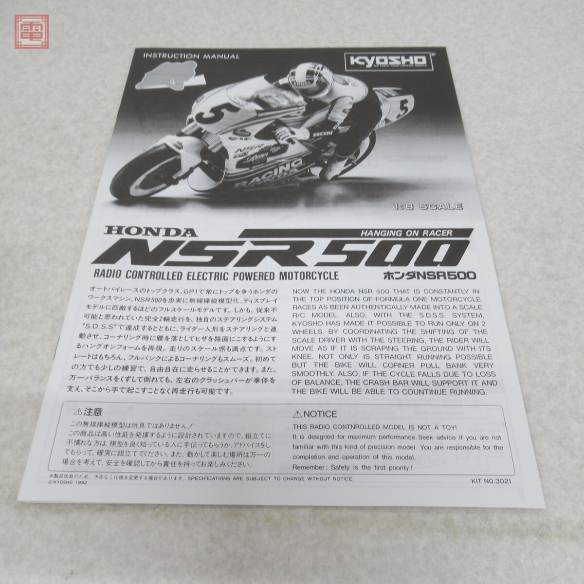 未組立 京商 1/8 ハングオンレーサー ホンダ NSR500 電動RC オートバイ No.3021 ■外箱にスレがあります。 ■内袋は未開封です。 ■説明書にスレがあります。 ■詳細なパーツの確認ができないため、パーツの過不足等の詳細は不明です。 ■写真のものが全てです。付属物の有無や状態については写真からご判断ください。 ■付属物については細かいチェックはしておりませんので、万が一、欠品があったり余計な物が入っていたとしてもご了承ください。 ■商品到着後、当店の保証期間中は、商品及び箱や取説、付属品などを1つでも廃棄や破損をしないようにお願い致します。廃棄や破損をした場合、商品に問題があった場合でも対応や返金などの対処ができなくなります。 ■商品によりますが、発売されてから10年以上経過している中古品である事をご理解頂いた上でご入札をお願い致します。なお、新品や美品、また特記事項がある場合は別途明記します。 | |||