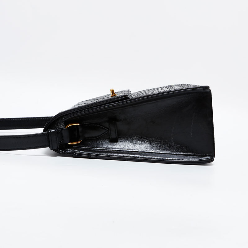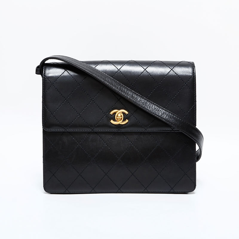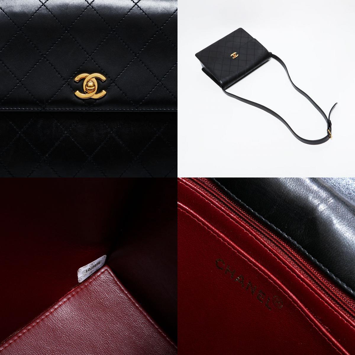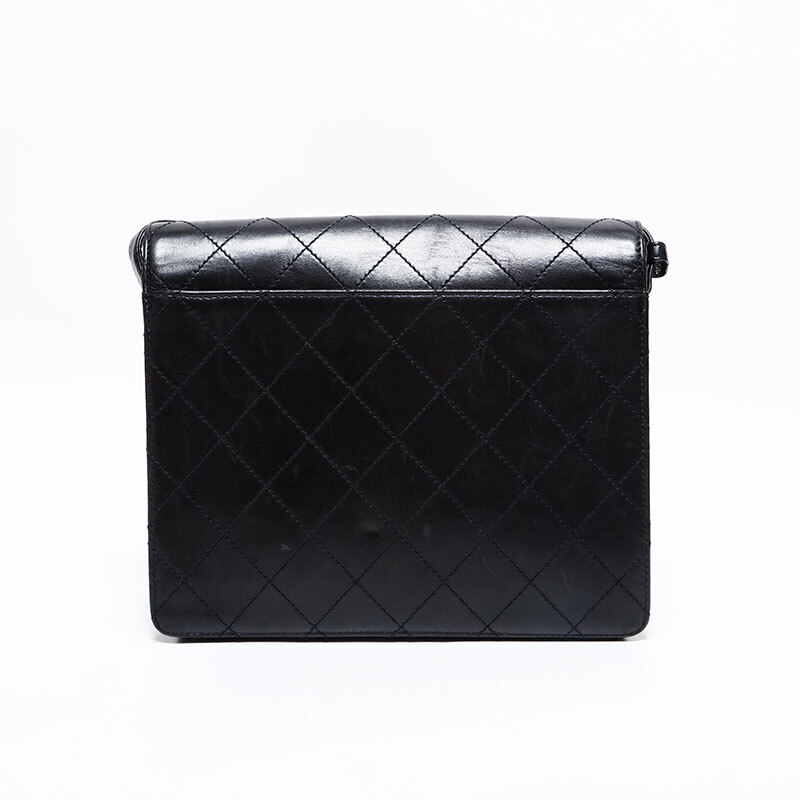 美品 CHANEL 5番台 1997-1999 ラムスキン ワイルドステッチ スクエア ショルダーバッグ ブラック