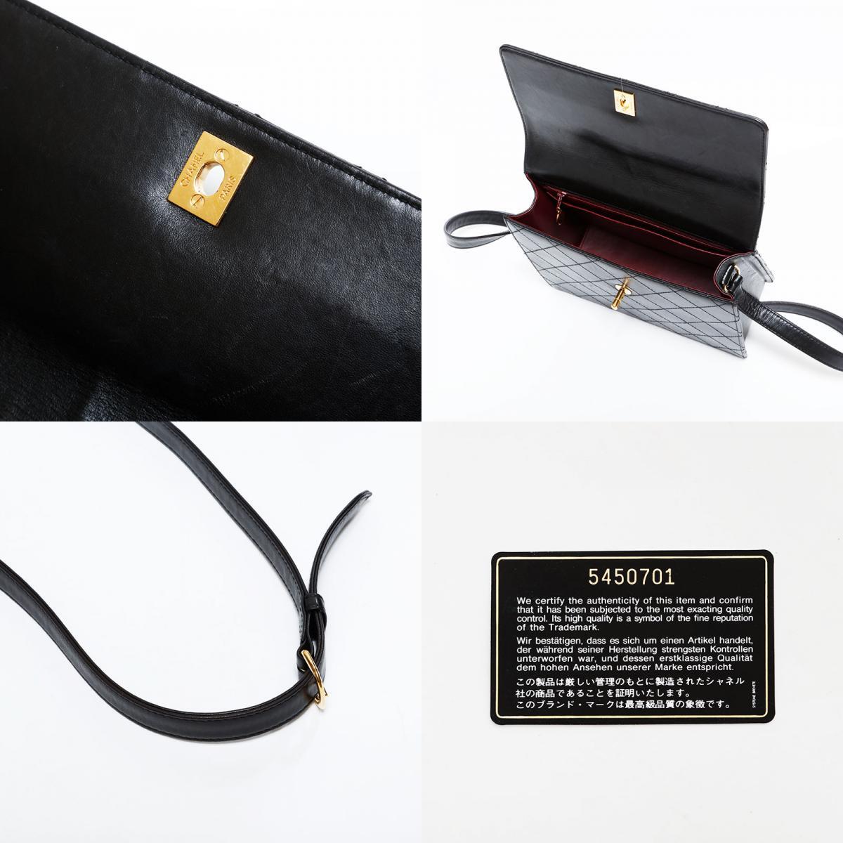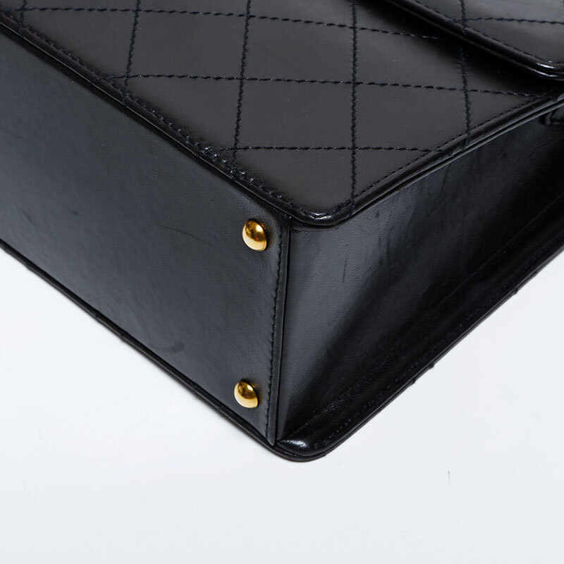 美品 シャネル CHANEL 5番台 1997-1999 ラムスキン ワイルドステッチ スクエア ショルダーバッグ ブラック WS22719