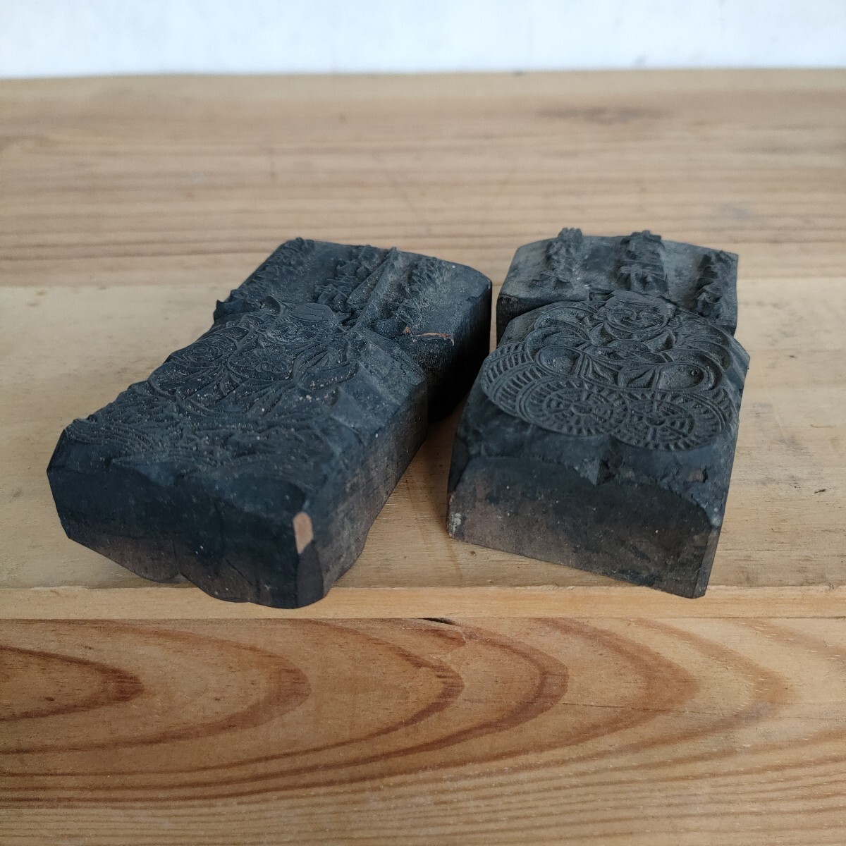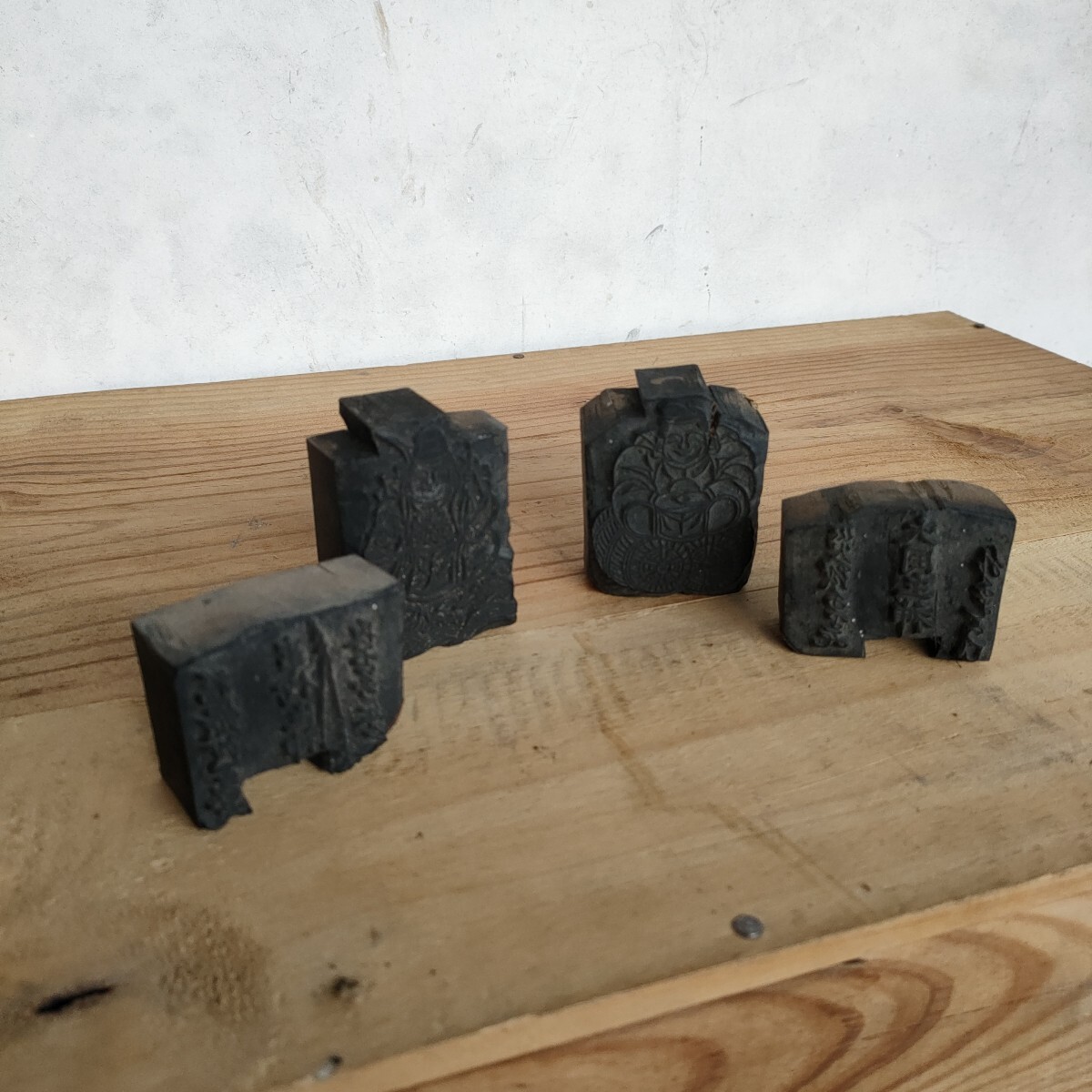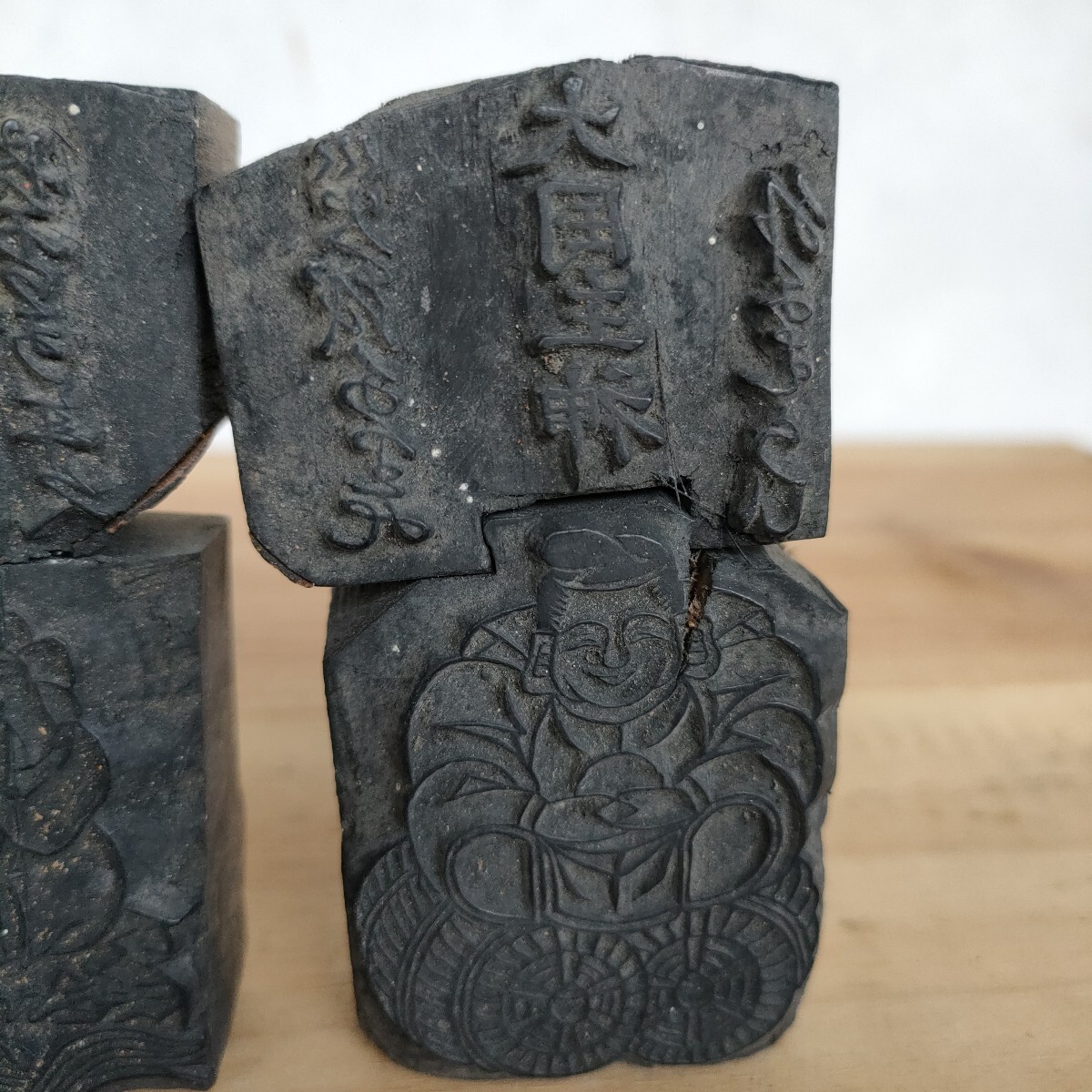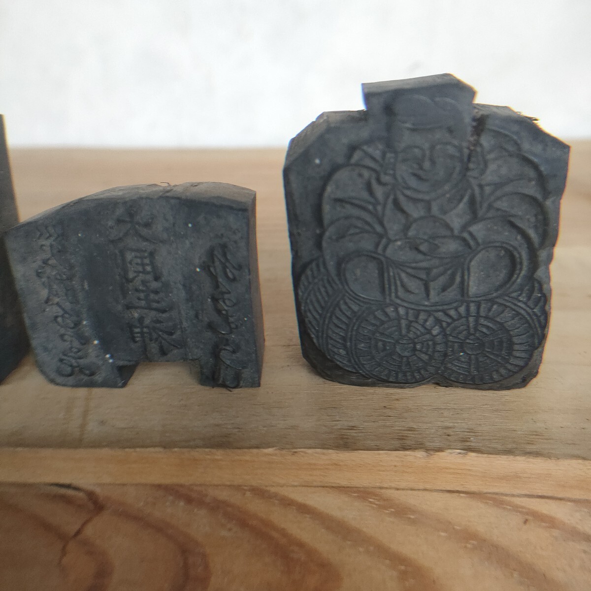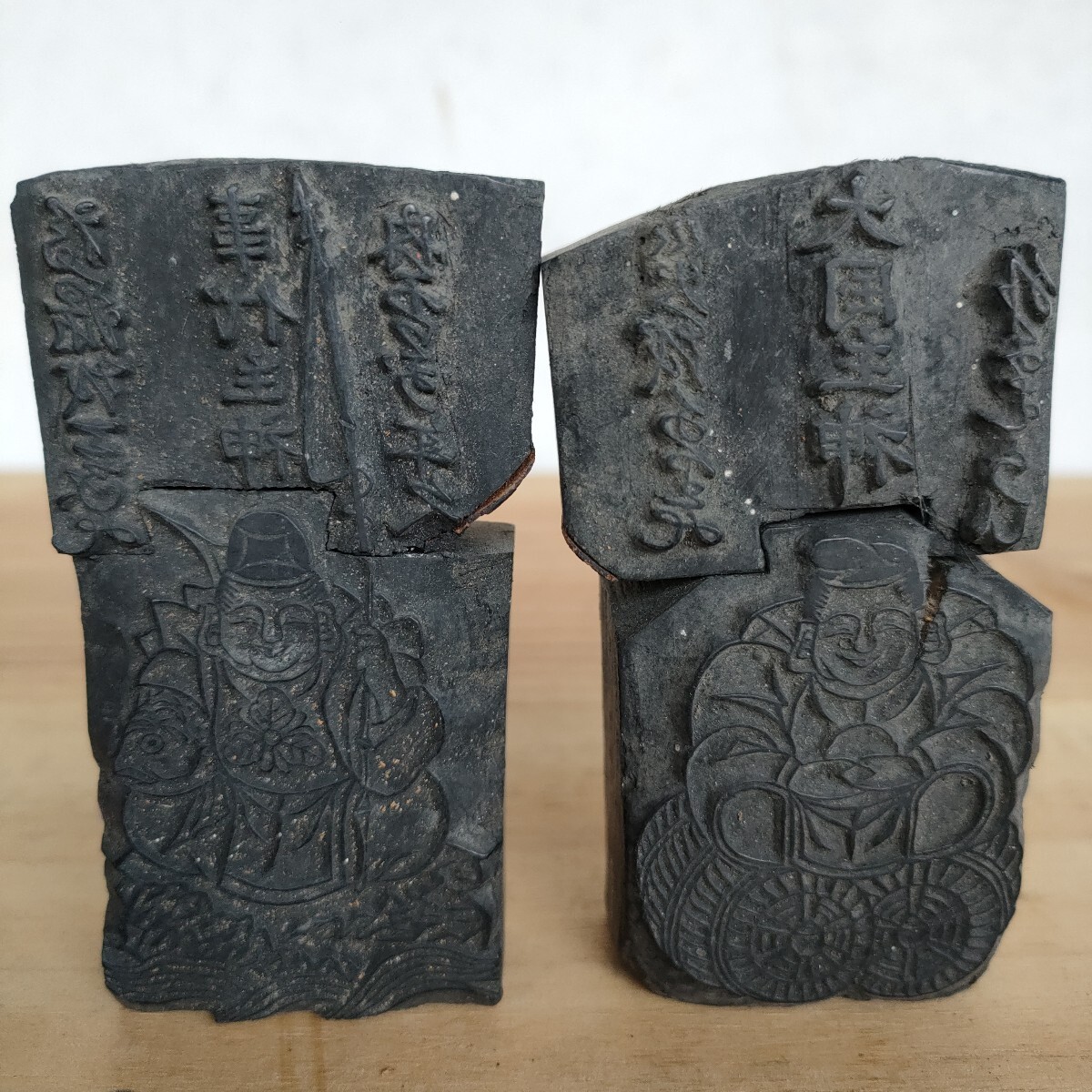 こちらは蔵出し初出し 版木 事代主神 大国主神 恵比寿天 大黒天 2体セット 9cm×5cm 木版画 原版 木版 縁起物 時代物 古道具 民間信仰 工芸品 木工 民藝 古美術 希少になります。