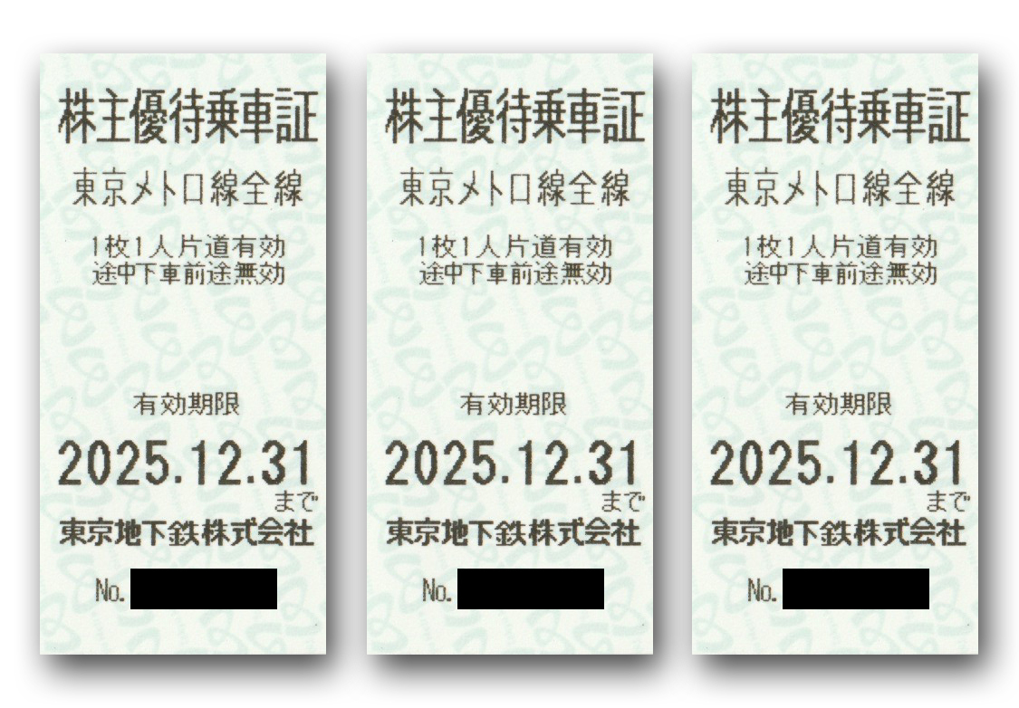 東京地下鉄 メトロ 株主優待乗車証3枚+関連施設各種優待券 ~2025.12.31まで★普通郵便 送料無料