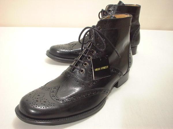 ハイストリート ブーツ M レザー 本革 革底 イタリア 黒 新品 4504