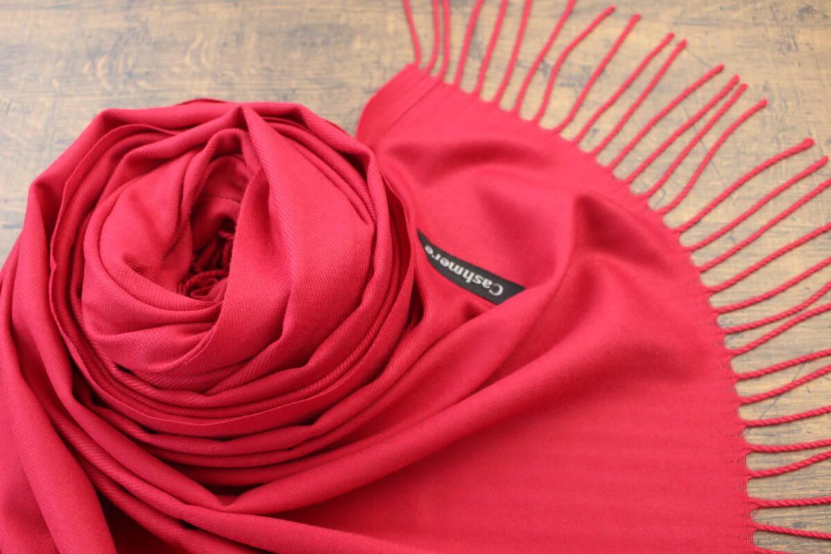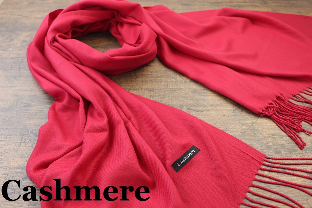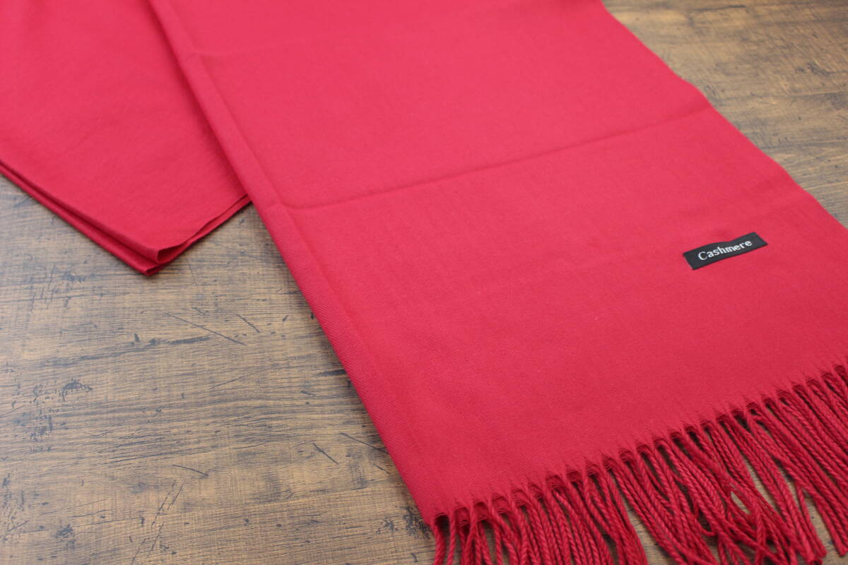 新品【カシミア Cashmere】無地 ワインレッド W.RED 深紅 Plain ライトタッチ 大判 ストール/マフラー