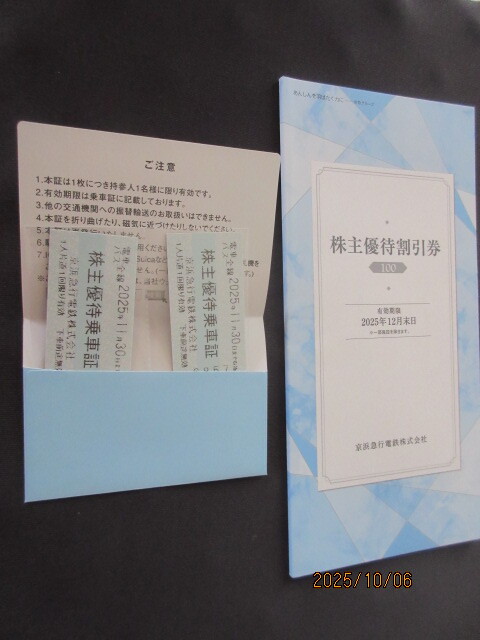 京浜急行鉄株主優待乗車証 2枚 ※有効期限は2025年11月30日 株主優待割引券 1冊 ※有効期限は2025年12月末日 ノークレームノーリターンでお願いします。