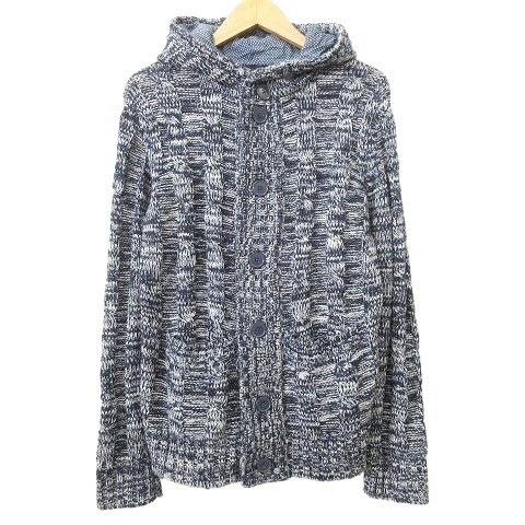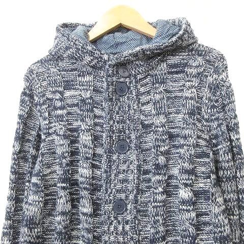 タケオキクチ THE SHOP TK MIXPICE ケーブル ニット フード付き カーディガン パーカー M 青 ブルー ■YHS6 メンズ