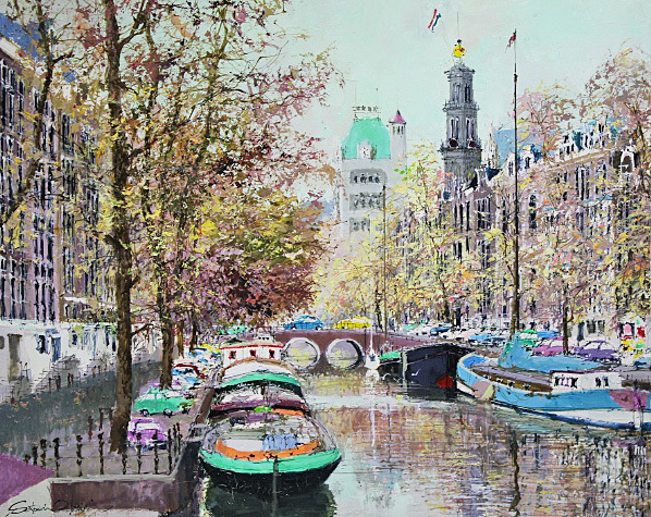 ■小田切訓■ 【秋の運河】 原画 油彩 12号 直筆サイン 真作保証有り 古径額シール