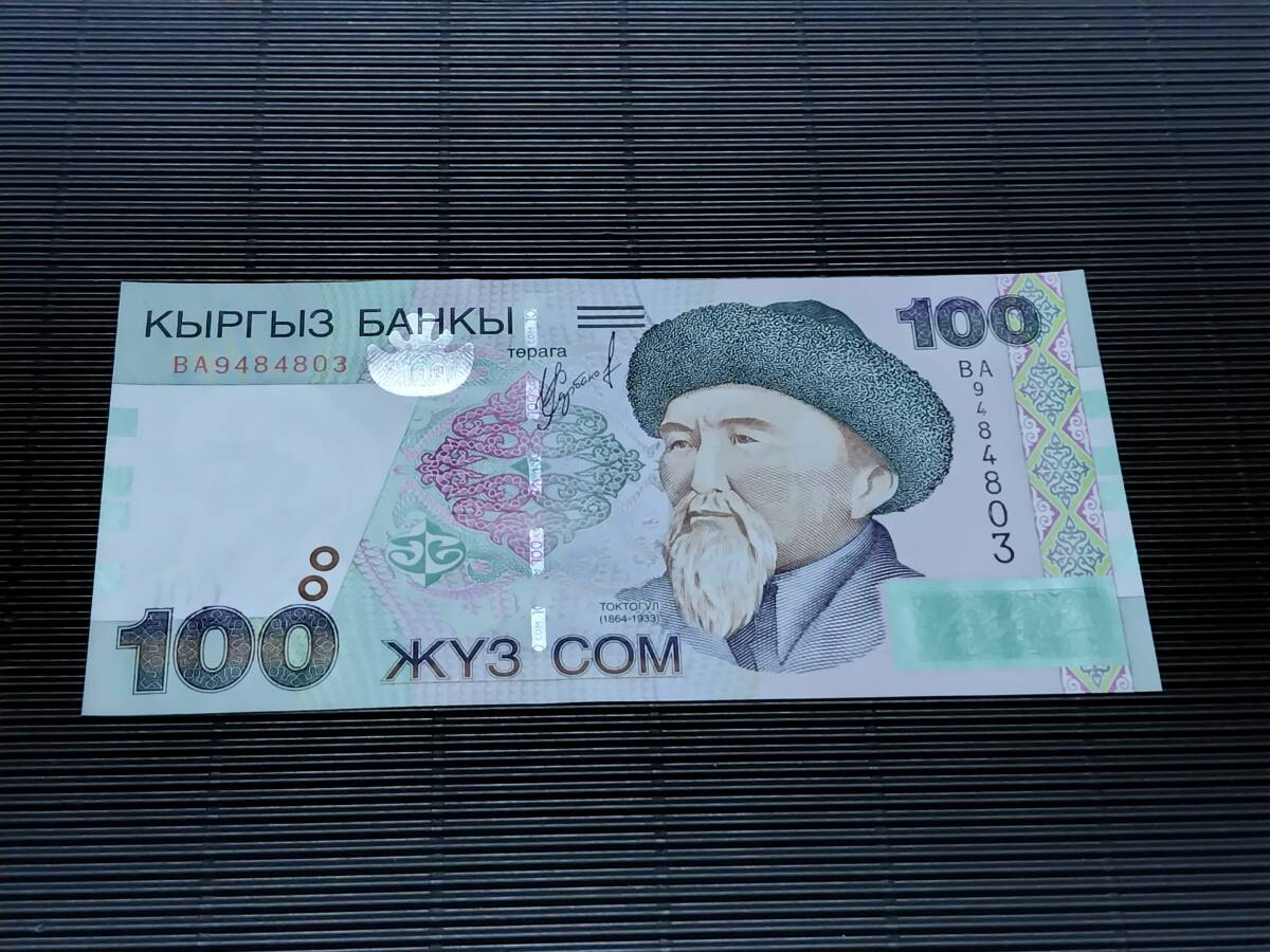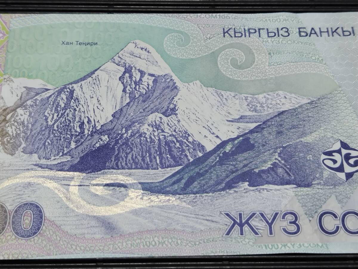 キルギス 100 som札 コレクション向けピン札 2002年 未使用~甘い未使用 ハン・テングリ峰 氷河 p-21 #BA9484807