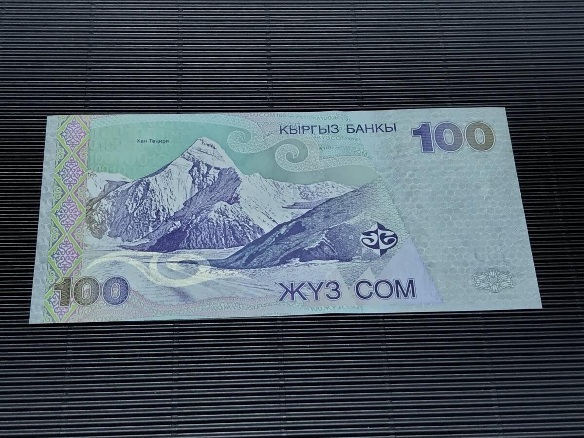 キルギス 100 som札  コレクション向けピン札  2002年 未使用~甘い未使用    ハン・テングリ峰 氷河 p-21 #BA9484807