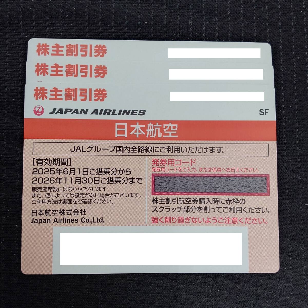 【1円スタート】JAL株主優待券 3枚セット 有効期間:2026年11月30日まで