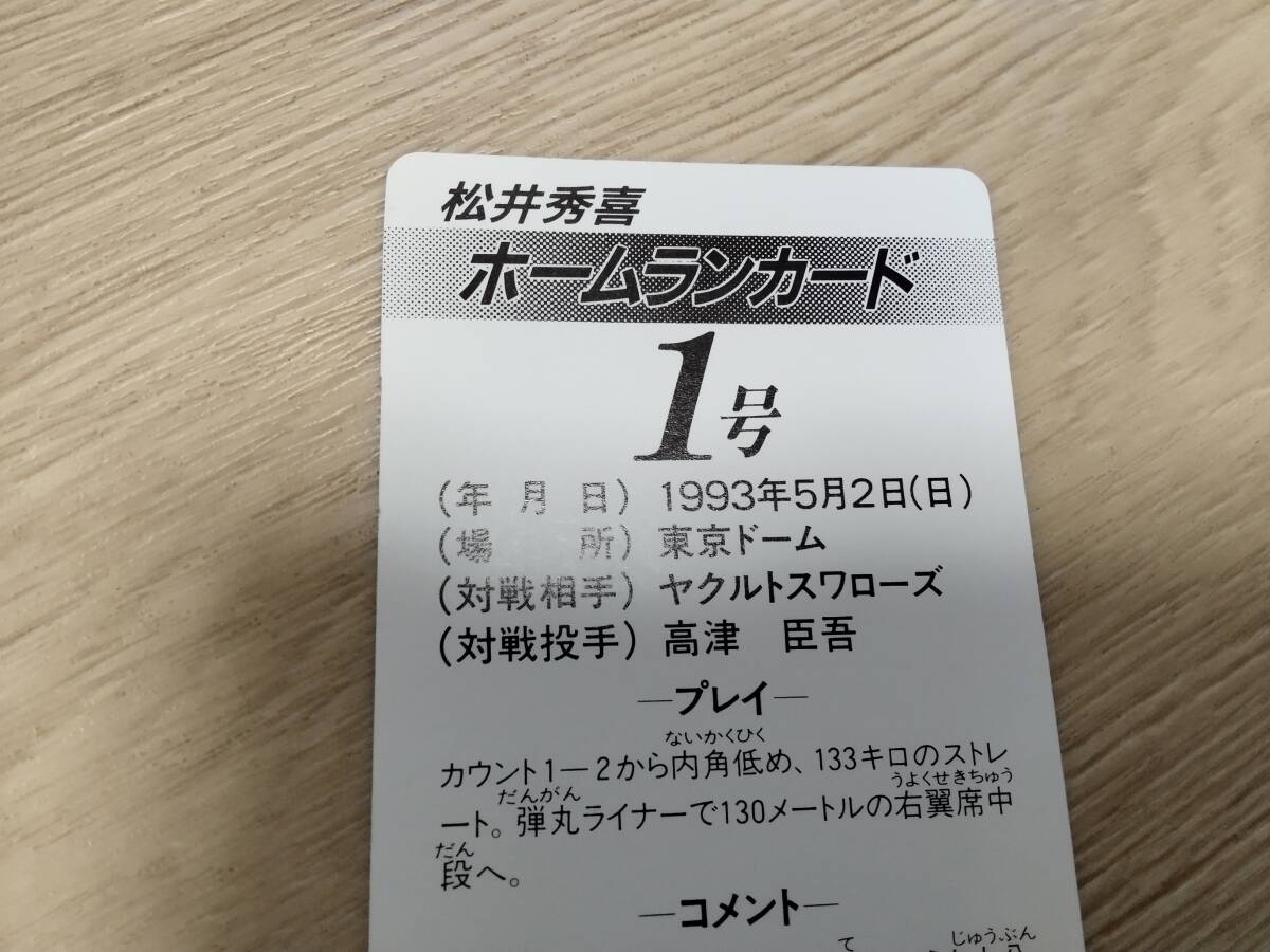 ホームランカード 松井秀喜 1号ホームラン 1993年5月2日