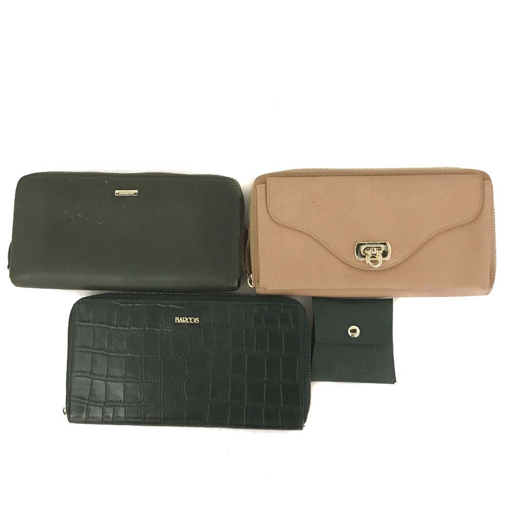 1円 BARCOS バルコス レザー 型押し ラウンドファスナー 長財布 コインケース 4点セット マルチカラー /ZX1018