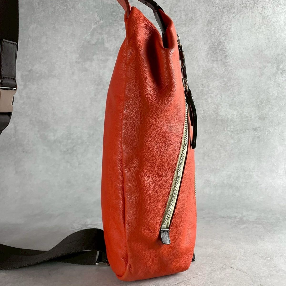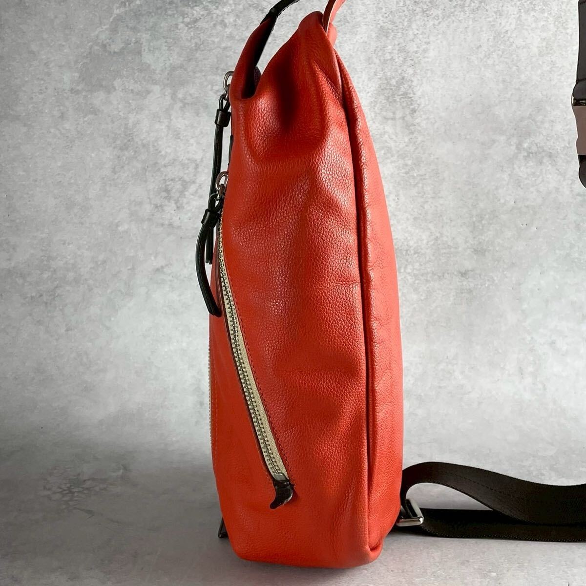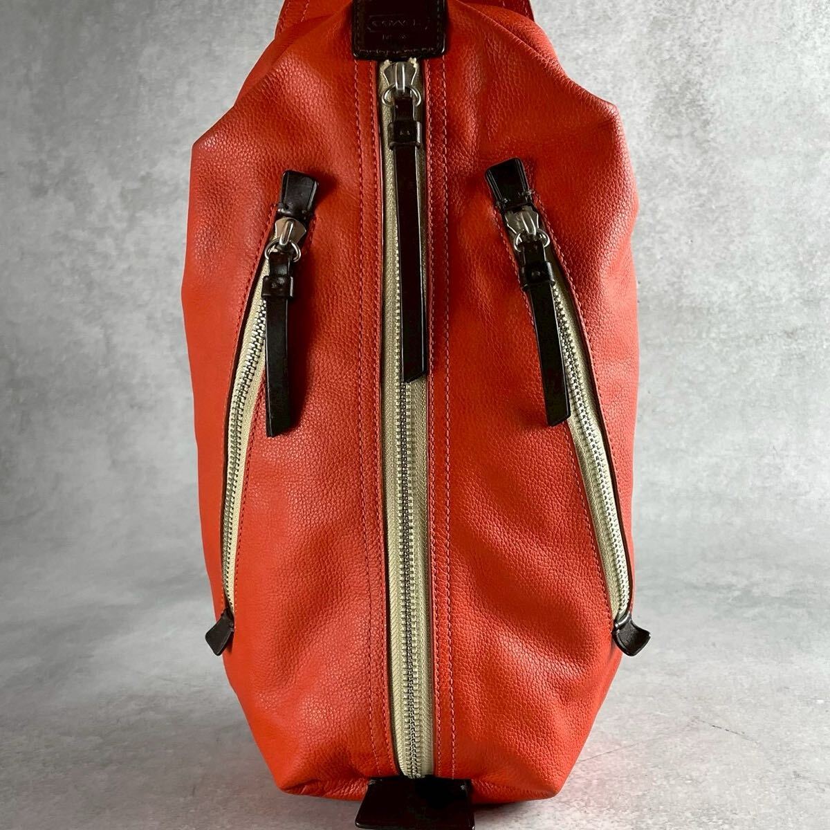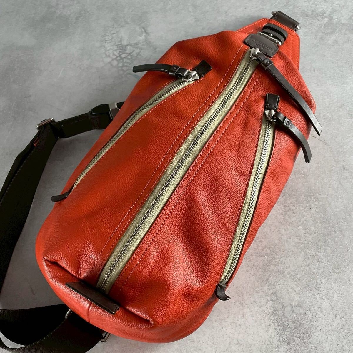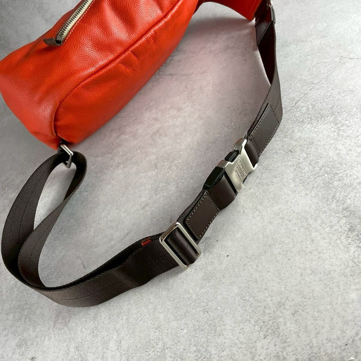 【美品 希少カラー】COACH コーチ メンズ ビジネス ショルダー バッグ ボディ トンプソン オレンジ レザー 本革 クロス 斜めがけ