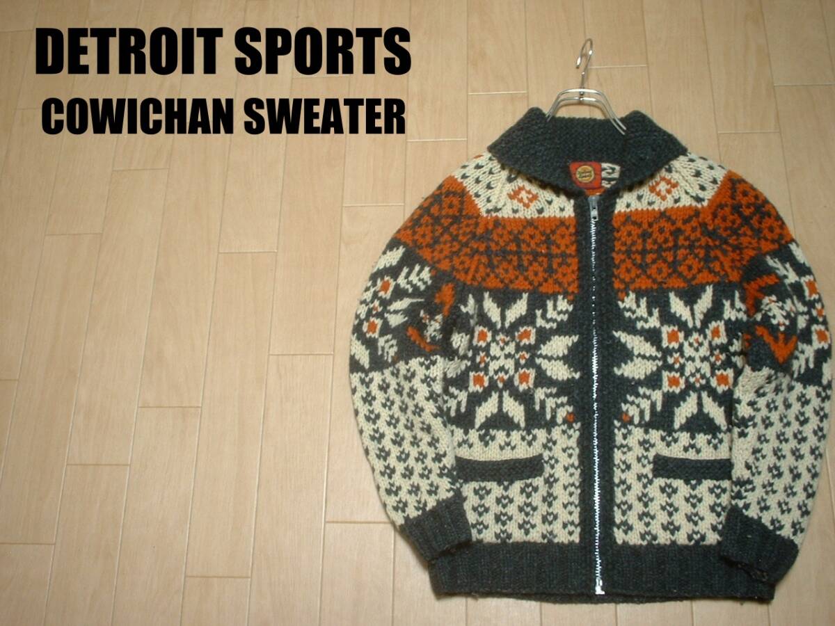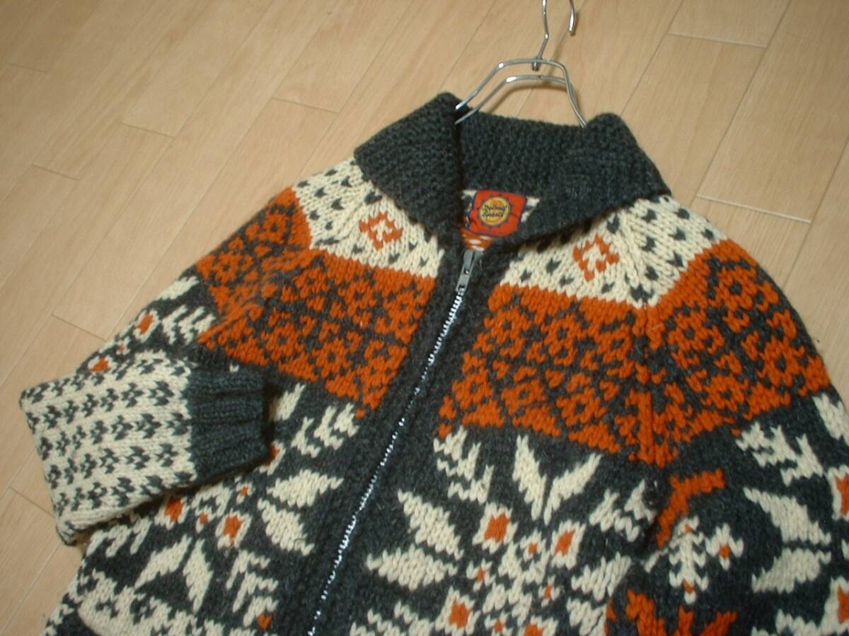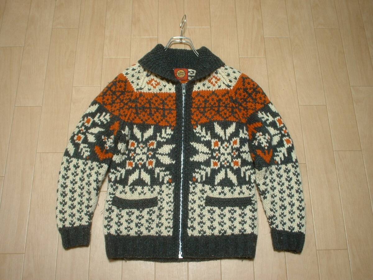 DETROIT SPORTSネイティブ柄ウールカウチンセーターMカナディアンカーディガンWOMENナバホインディアンノルディックフェアアイルレディース