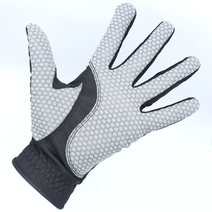 | 【驚異のグリップ力、心地よい伸縮性能】 ・シリコン樹脂加工の生地で、滑りを防止し、優れたグリップ力を発揮。 ・甲部分と指間部分に伸縮性に優れたストレッチ素材を使用。 ・悪条件下のプレイでもグリップを強力にサポートします。 | |