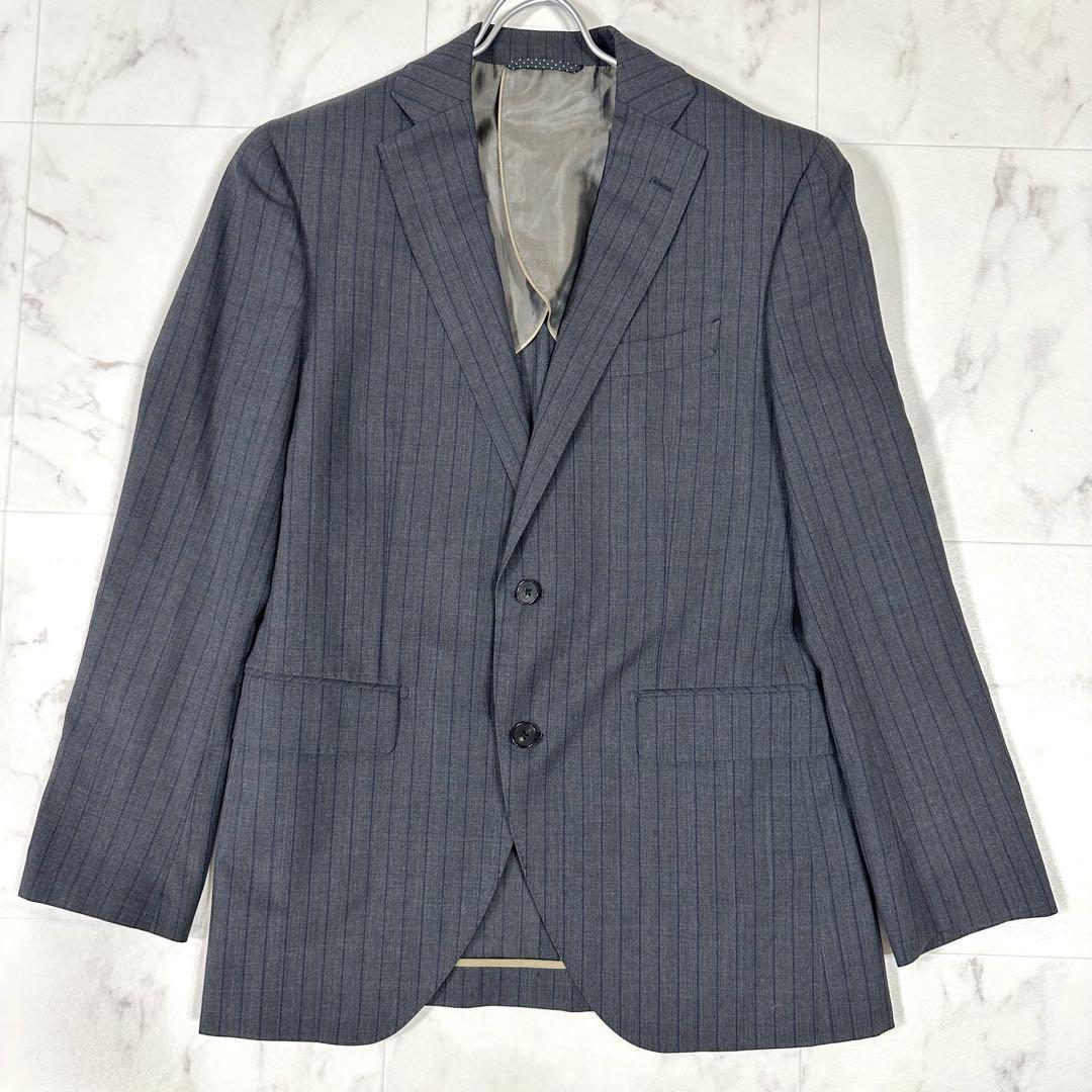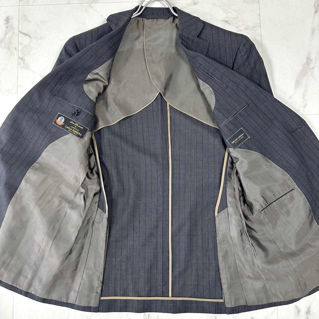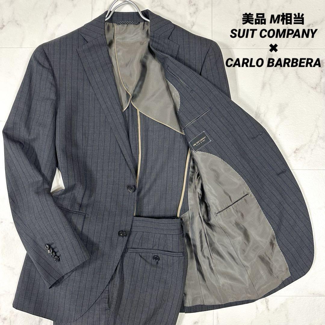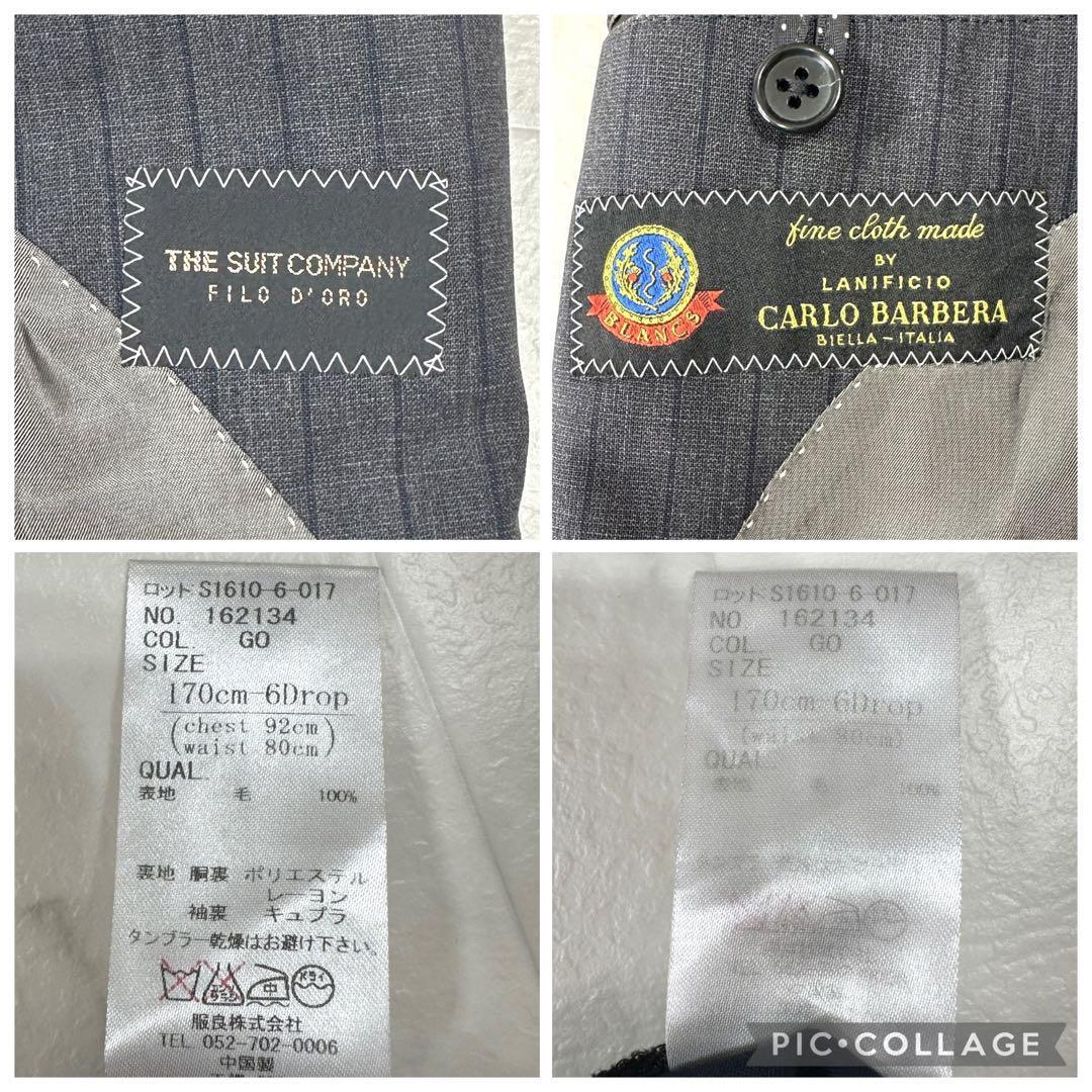 【美品】THE SUIT COMPANY スーツ上下セット CARLO BARBERA生地使用 チャコールグレー系ストライプ 170cm 6Drop(M相当)