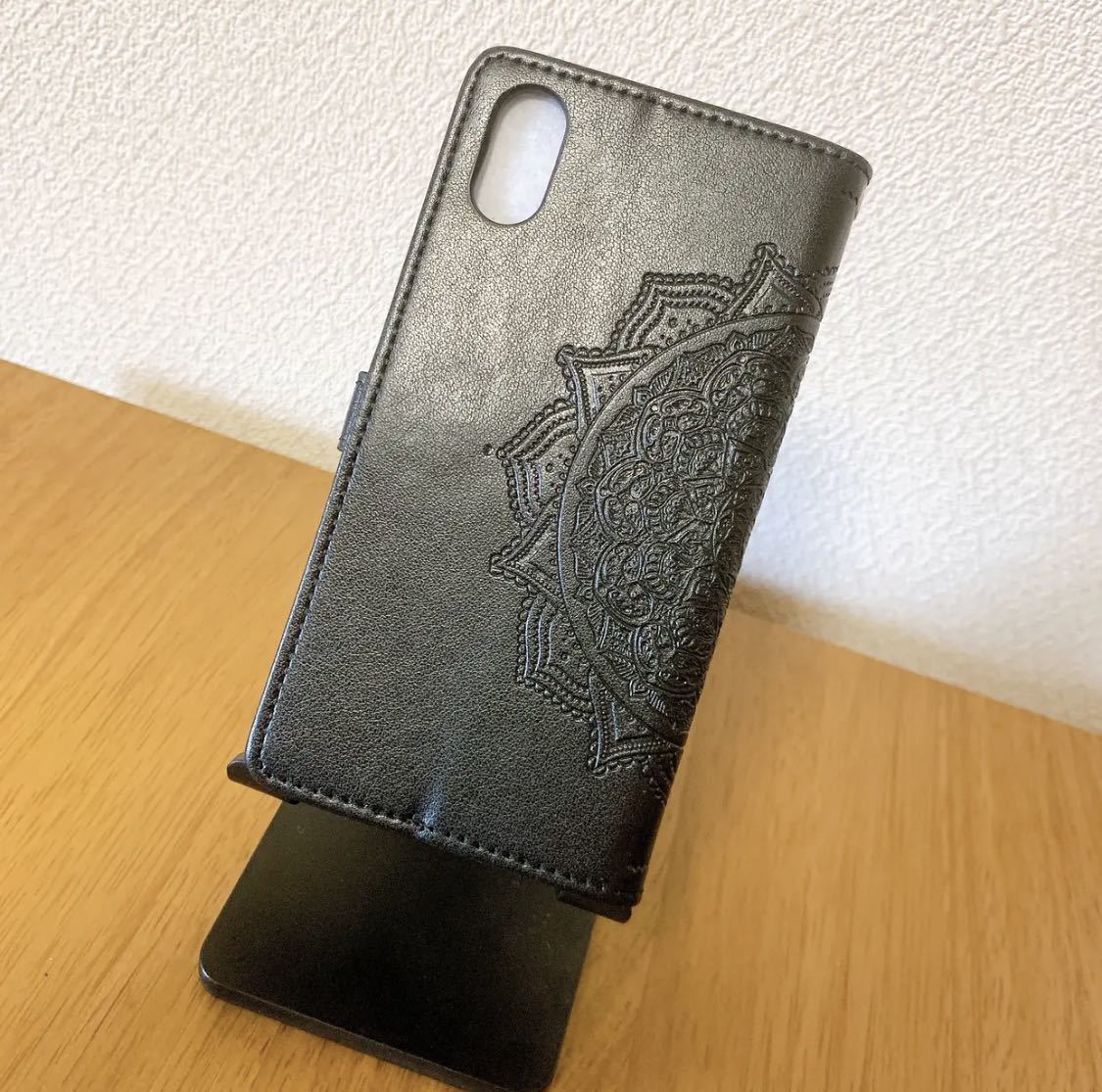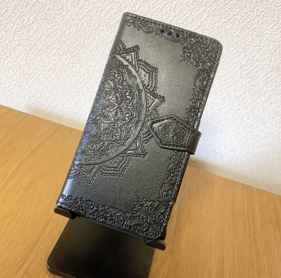 エンボス加工スマホケース 手帳型 iPhone X/XS ブラック